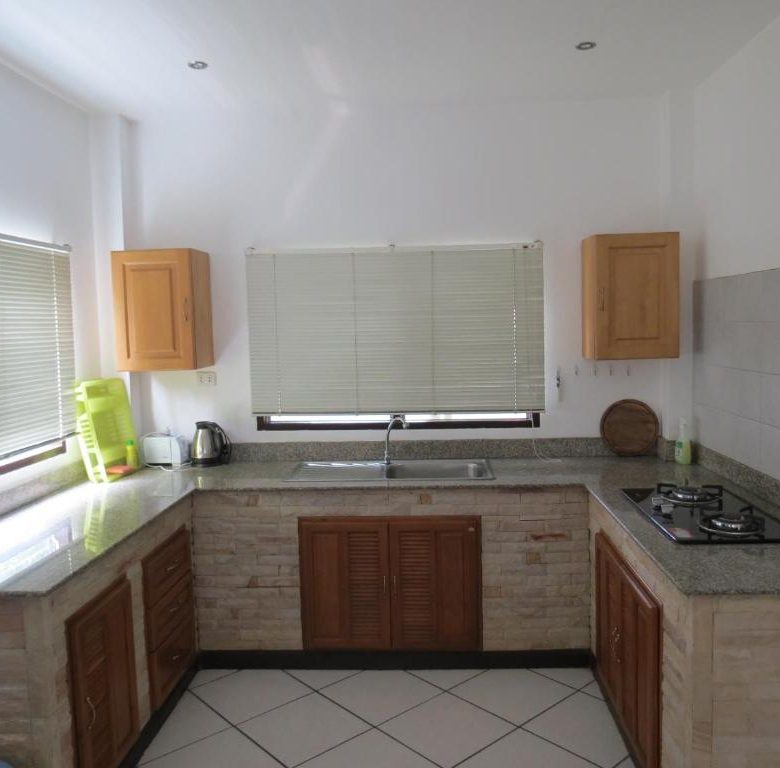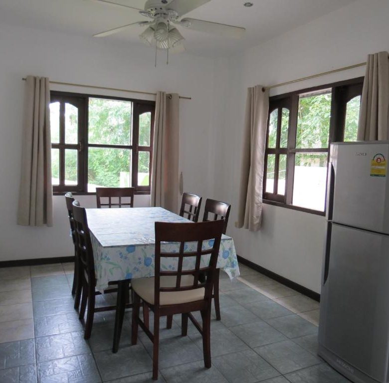 This resort with its 5 villas is in a top location in Choengmon. The villa has a living room with kitchen and a guest toilet on the ground floor.