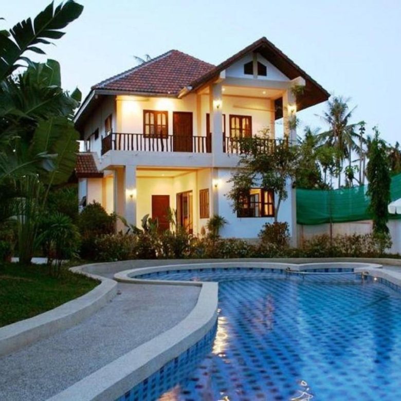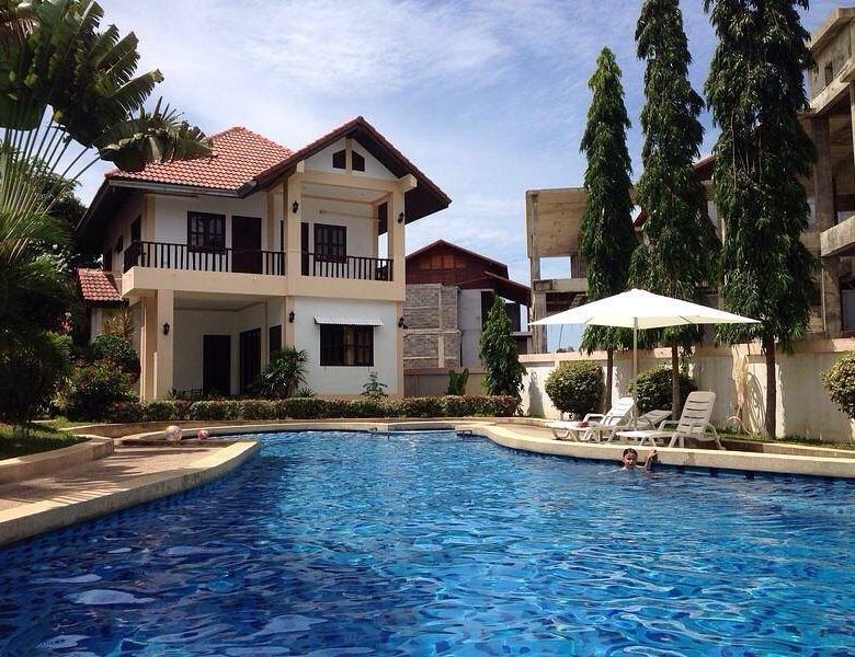 The villas are fully furnished and the resort has a pool that invites you to swim.