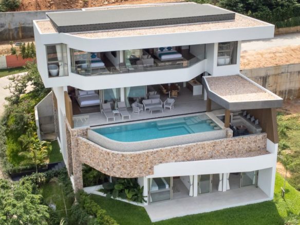 This is a comfortable 3 bedroom property that was created in thai style. Villa enjoys an intimate courtyard with a private swimming pool surrounded by tropical lush greenery. Next to a pool there are a couple of sun-loungers with an umbrella and dining table that would be perfect for meals in the open air. Moreover, there is a projector home cinema over the pool so that you can spend your evenings watching your favourite movies on a big screen. Inside there is a living room with a fully equipped kitchen and dining table. Behind the living room there is a master bedroom equipped with a king-size double bed, air-con and en-suite bathroom with a bath and shower. Two more bedrooms are situated upstairs and also have en-suite bathrooms, air-cons and king-size double beds. All premises are air-conditioned and have access to speed Wi-Fi. Villa is also equipped with charcoal BBQ.