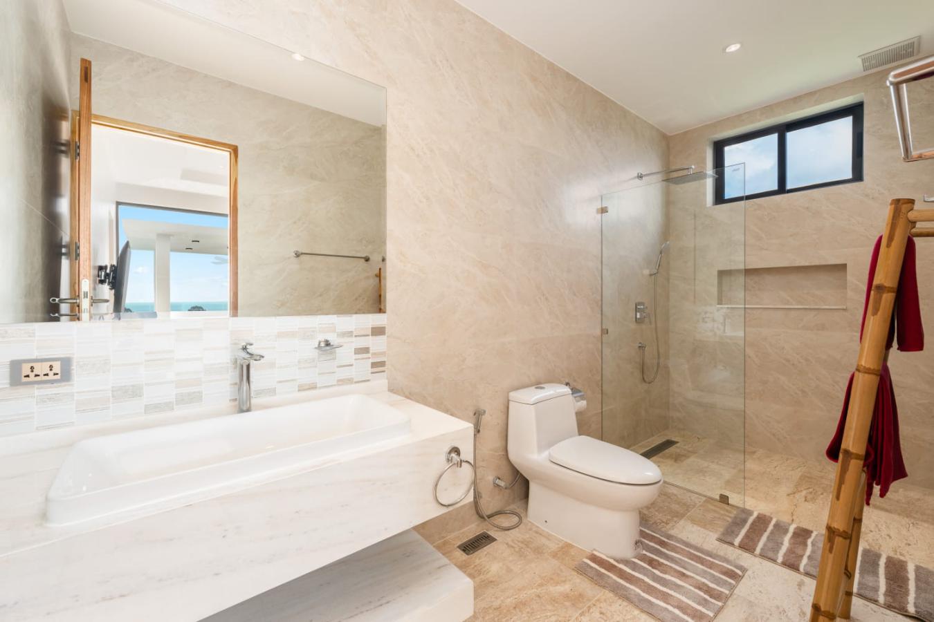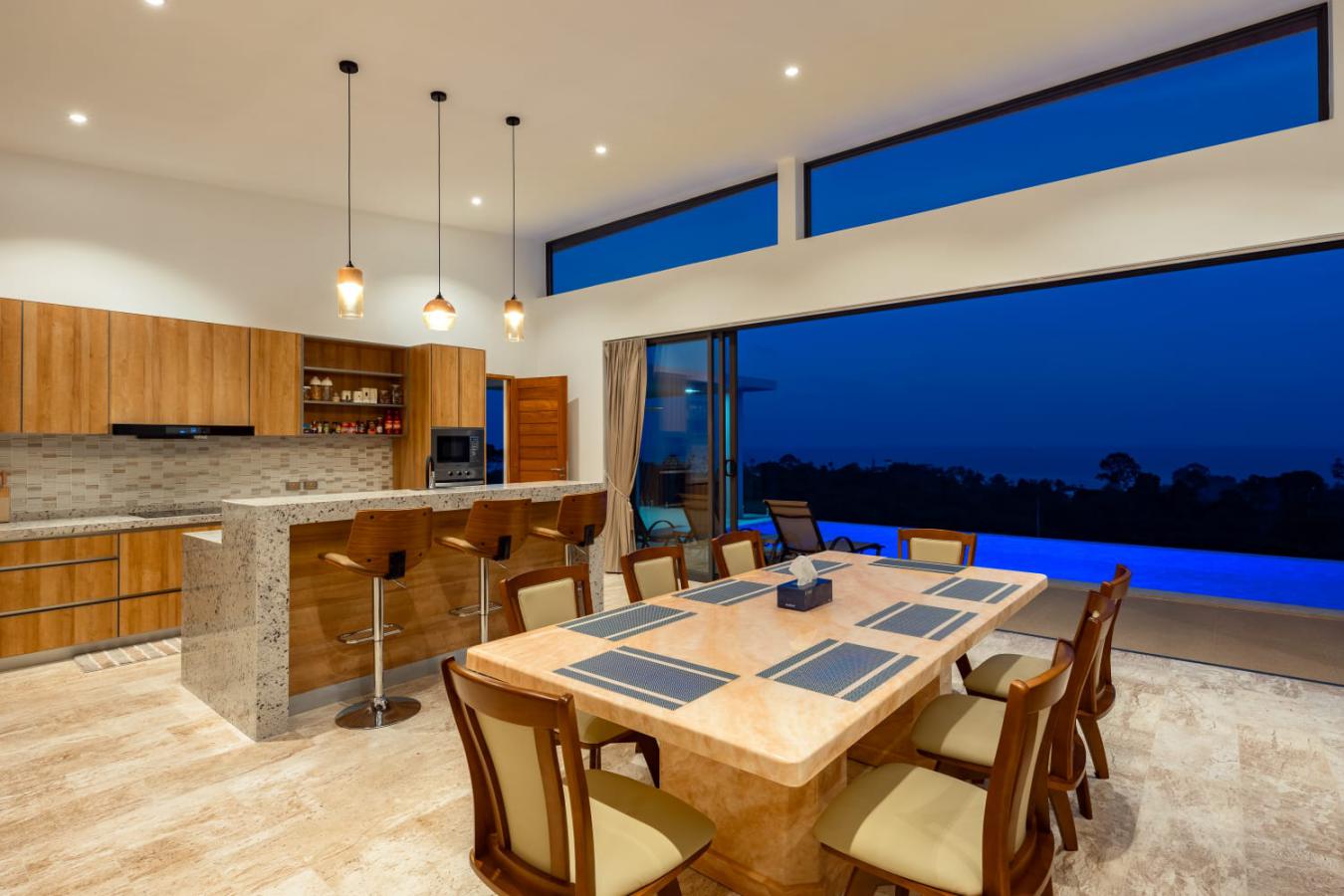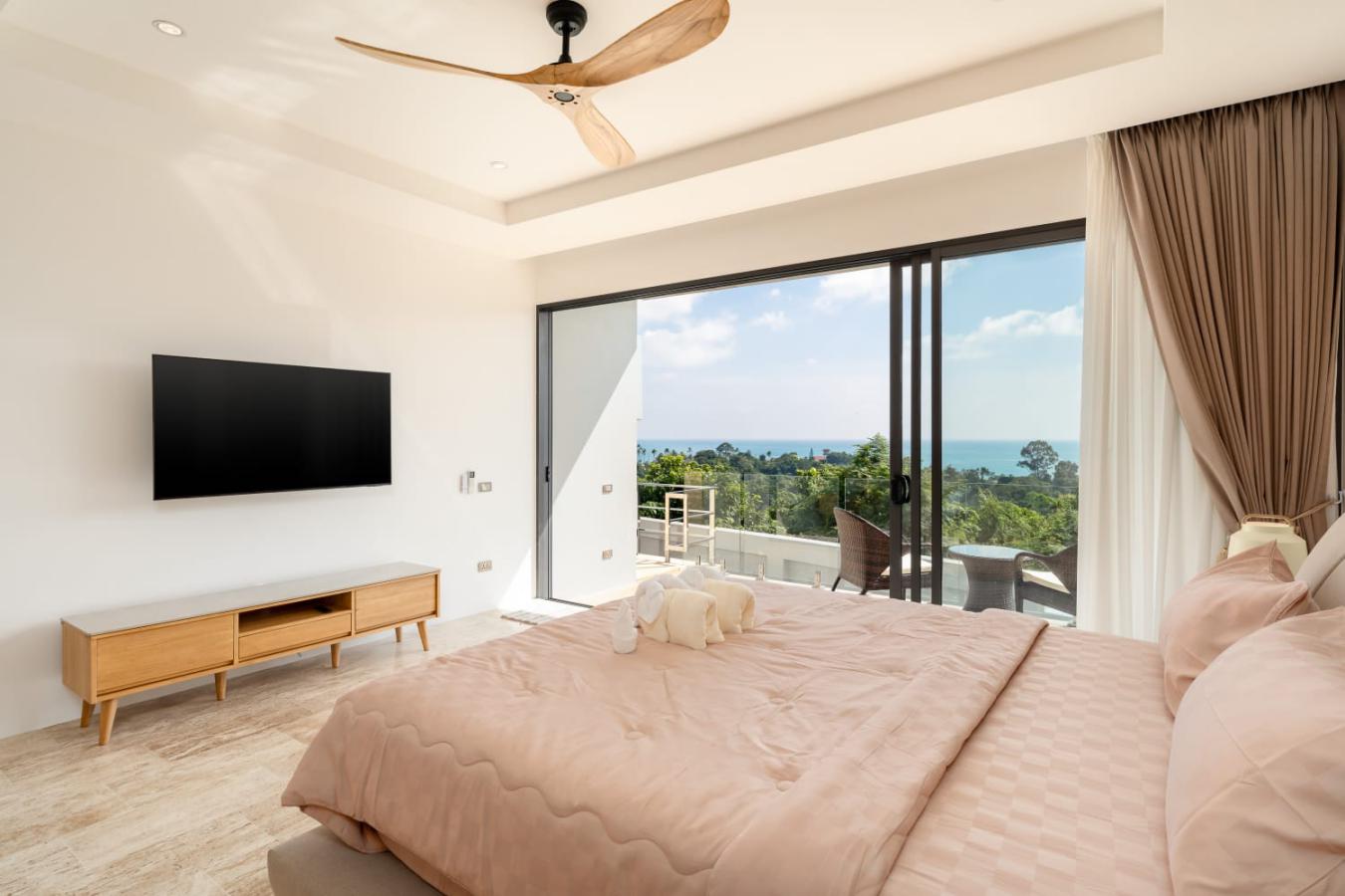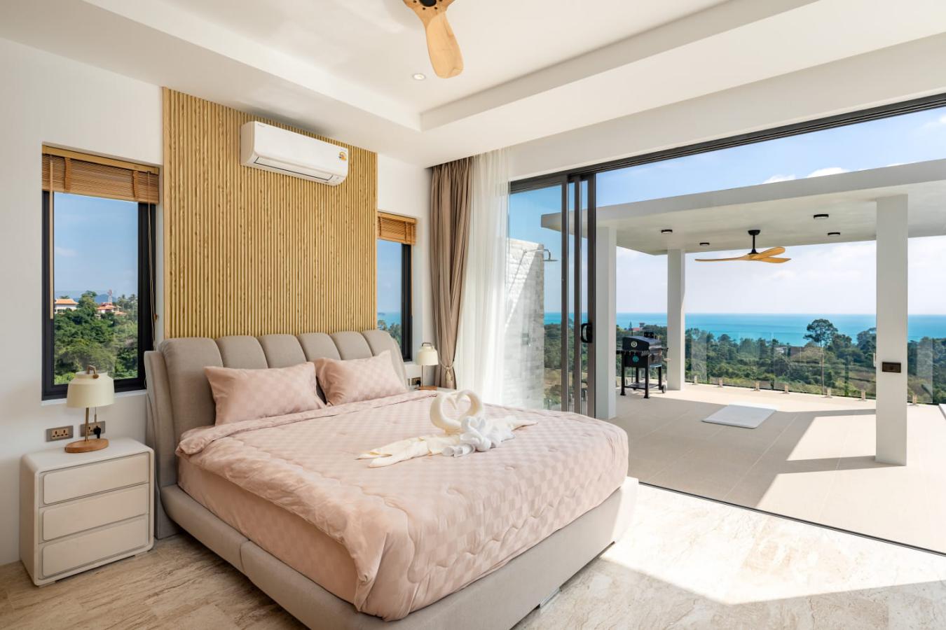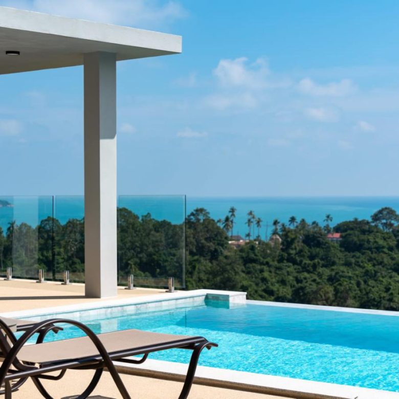 Enjoy panoramic views over the ocean and Chaweng Lake from this striking contemporary villa, perfectly positioned to combine elevated privacy with exceptional convenience. Designed with modern materials and clean architectural lines, the property offers generous indoor and outdoor living spaces framed by sweeping island views.