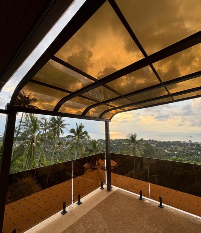 Perched on an elevated hillside in the sought-after northwest of Koh Samui, this villa commands panoramic sea and sunset views that will leave you speechless. The modern architectural design, with its clean lines and light palette, perfectly complements the lush tropical surroundings, creating a serene and private oasis. Dive into your private infinity pool, where the shimmering water seamlessly blends with the horizon, offering a truly mesmerizing experience. The spacious pool terrace provides ample space for sun loungers, outdoor dining, and simply soaking in the breathtaking scenery. While offering complete seclusion, the villa is conveniently located just a short drive from local amenities, restaurants, pristine beaches, and is only 15 minutes from the renowned Greenacre International School, making it ideal for families.