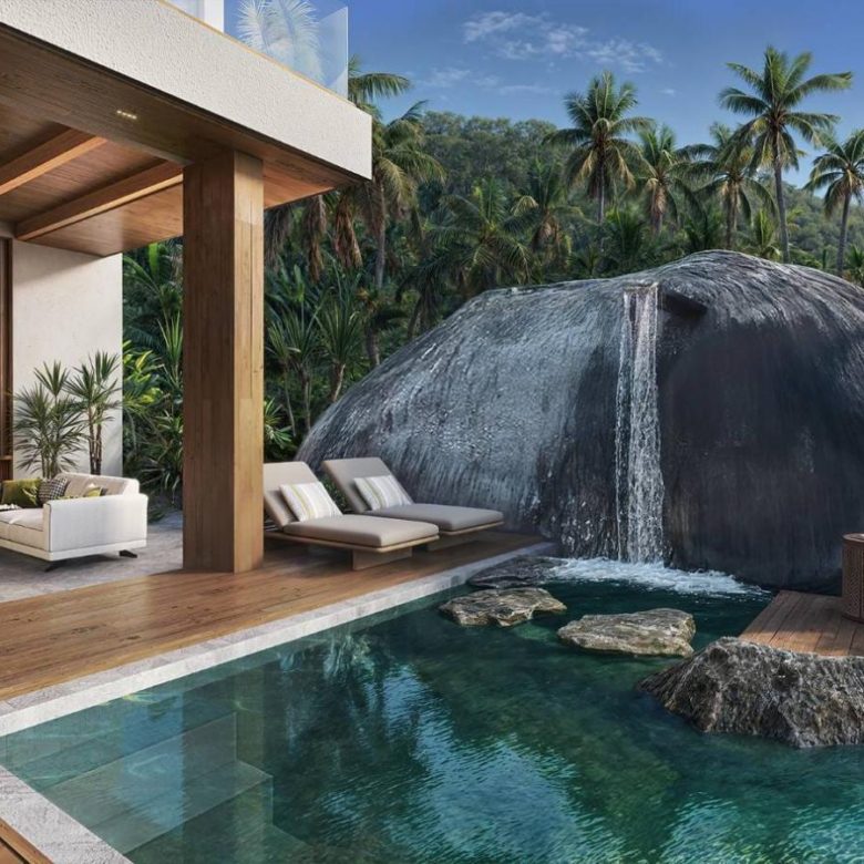 From the moment you step inside, the villas open up to light-filled living spaces with soaring ceilings and seamless indoorâoutdoor flow. The expansive terrace leads directly to a private infinity-edge saltwater pool (8.5 x 3 m), perfectly positioned to capture views of the hillside and waterfall beyond. Itâs a setting that invites quiet mornings with coffee, sun-filled afternoons by the pool, and evenings spent surrounded by the sounds of flowing water.