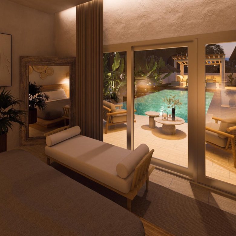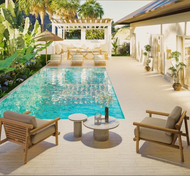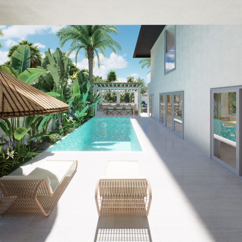 Each villa sits on a 514 mÂē plot with a total living space of 177 mÂē and an outdoor area of 200 mÂē. The peaceful residential setting ensures privacy and calm, surrounded by lush greenery, yet only a short drive to the islandâs best amenities.