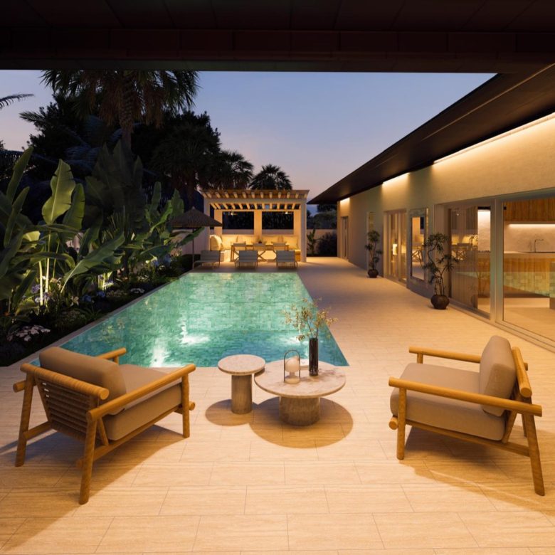 Relax by your private pool , surrounded by a landscaped tropical garden. A covered sala provides shade for outdoor dining and entertaining, while the 200 mÂē outdoor living space is designed for gatherings, BBQs, and relaxed evenings.