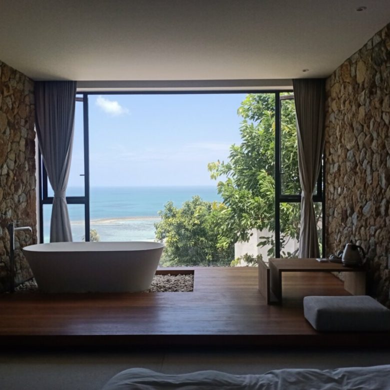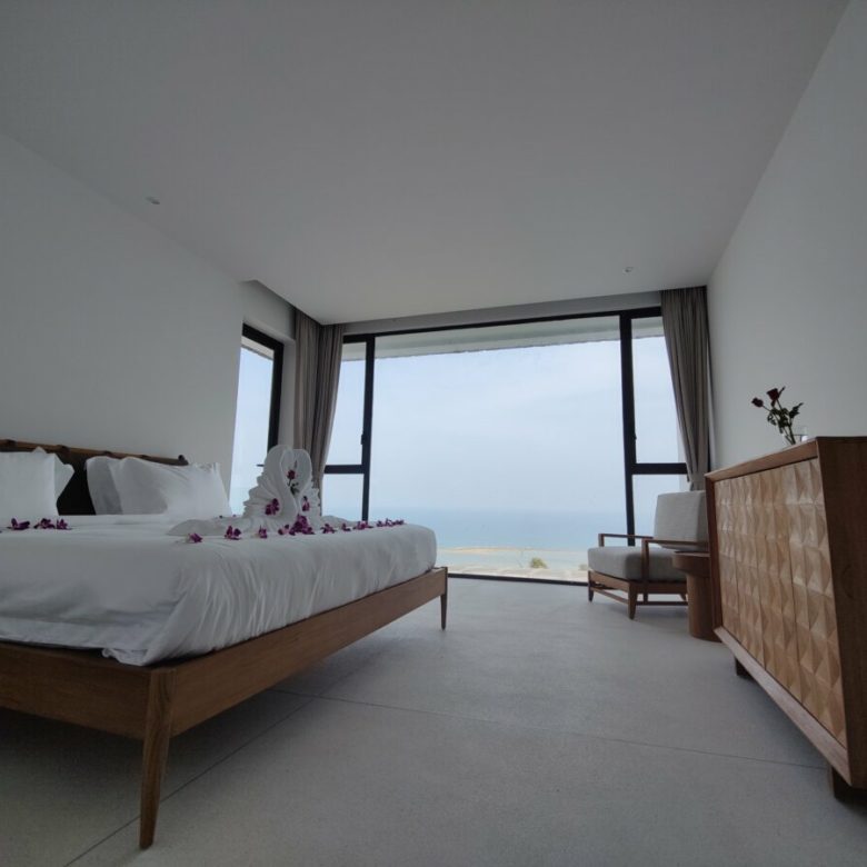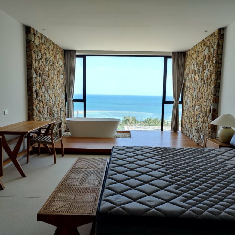 The ultimate sea view infinity pool (up to 13.5m) makes you feel amazing as soon as you enter the villa. The stunning design ensures the privacy of the living room, so that âI can see the world, the world cant see meâ has become a reality. The spacious living room provides a very practical place for and families and friends. The sophisticated full kitchen setup is equipped to make your holiday experience more lifestyle. The villa is also specially equipped with multiple working areas, with spacious table lamps and chairs and internet coverage.