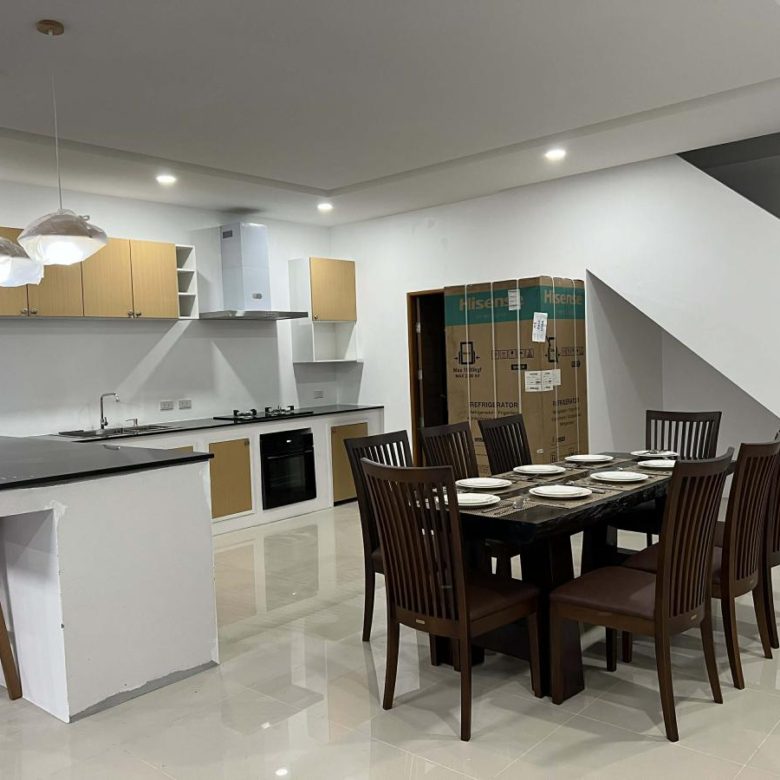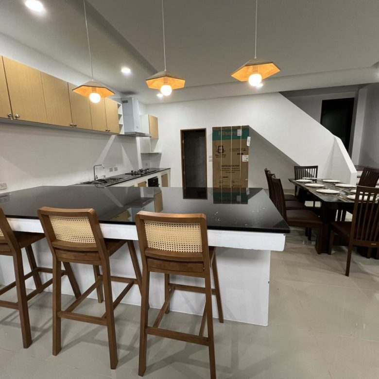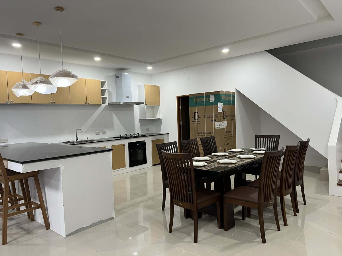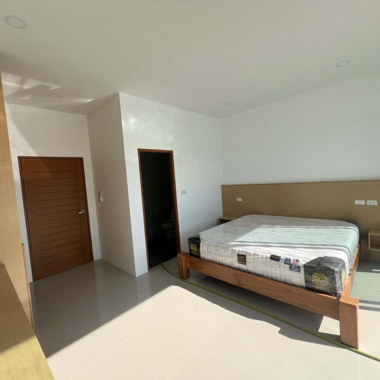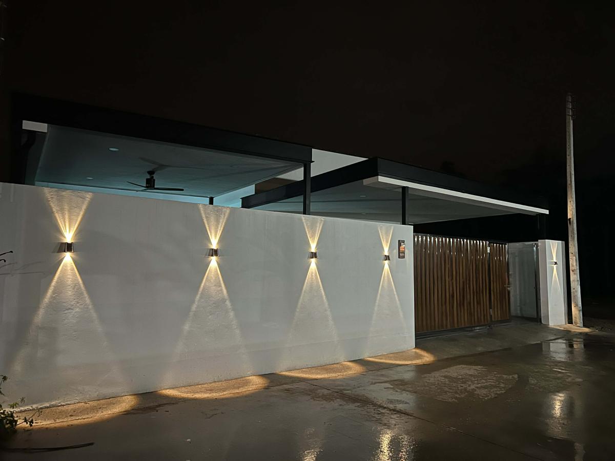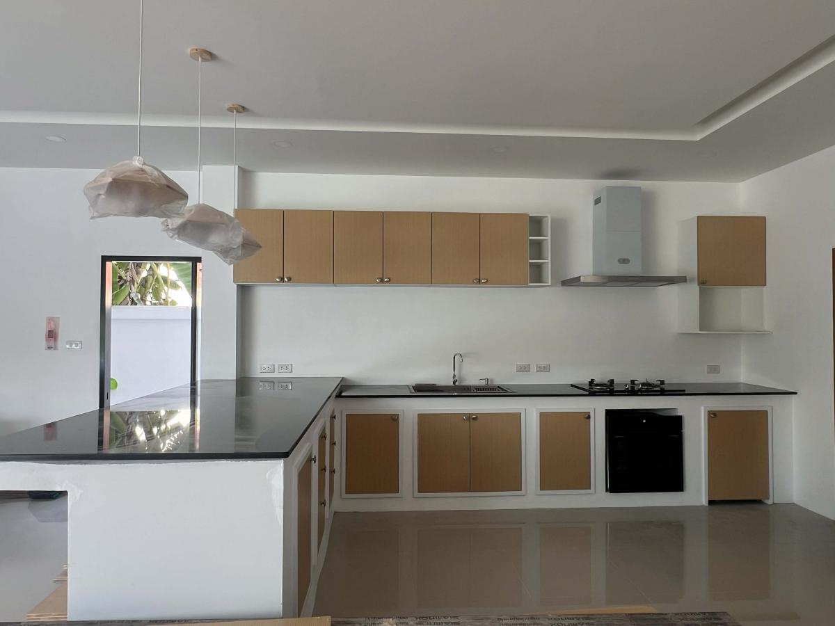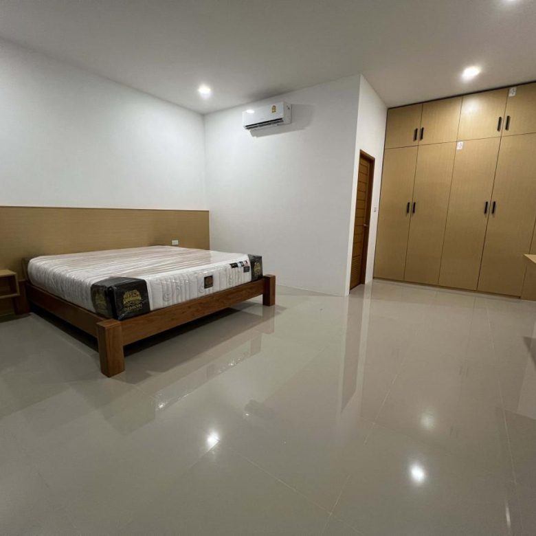 This pool villa features a spacious living room, 4 bedrooms, and 5 bathrooms. The kitchen boasts granite countertops and brand-name appliances. There’s a spacious dining room and a bright living room with a real leather sofa set and dining chairs. The surrounding area offers a full range of amenities, including supermarkets, schools, an international hospital, and local markets. The villa is located in a golden area with a peaceful and healthy community, 5 minutes’ driving time to Ao Nang Beach. This villa has a sky garden on the second floor with a surrounding mountain view.