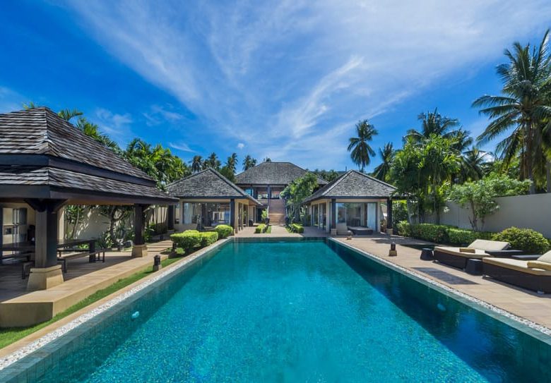 Experience unparalleled luxury and tranquility at this vila – A Stunning, Luxury Beachfront Villa nestled in the picturesque enclave of Taling Ngam, Koh Samui. This opulent five-bedroom villa epitomizes sophistication and elegance, offering a quintessential retreat for those seeking an extraordinary vacation experience.