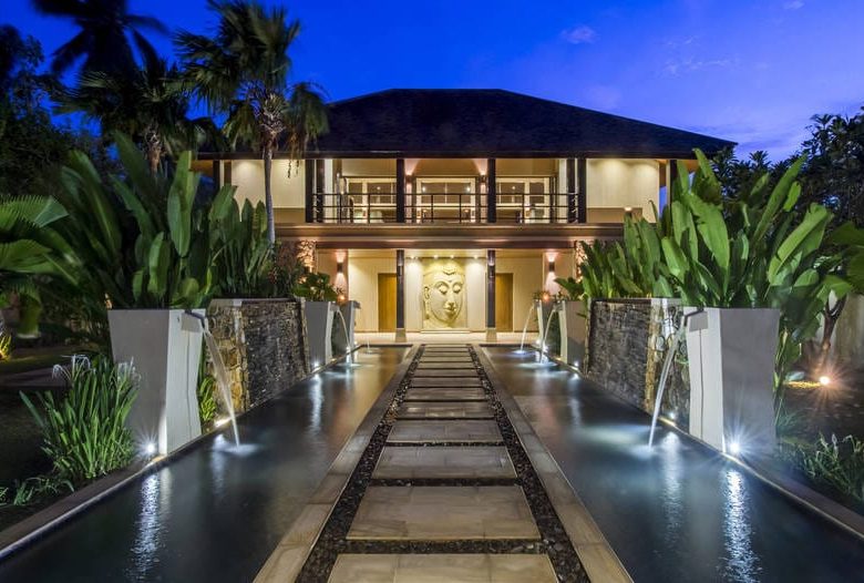 Upon entering the villa grounds, guests are greeted by a grand entranceway adorned with cascading waterfalls, setting the stage for the unparalleled luxury that awaits within. Stepping stones lead guests through lush gardens into the main pavilion, where the allure of this magnificent retreat truly unfolds.