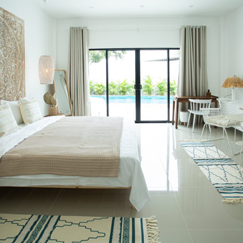 - Prime Location: Situated on a 568.4 mÂē plot with a 250 mÂē interior and a 550 mÂē built area, the villaâs location is unparalleled. Itâs within walking distance to local conveniences like 7-Eleven, Si Khao night market, gyms, and the ring road. Samui Lotus and Samui Central Festival are just a 3-minute drive away, while the pristine Chaweng Beach and Samui International Airport are within a 7-minute drive radius.
