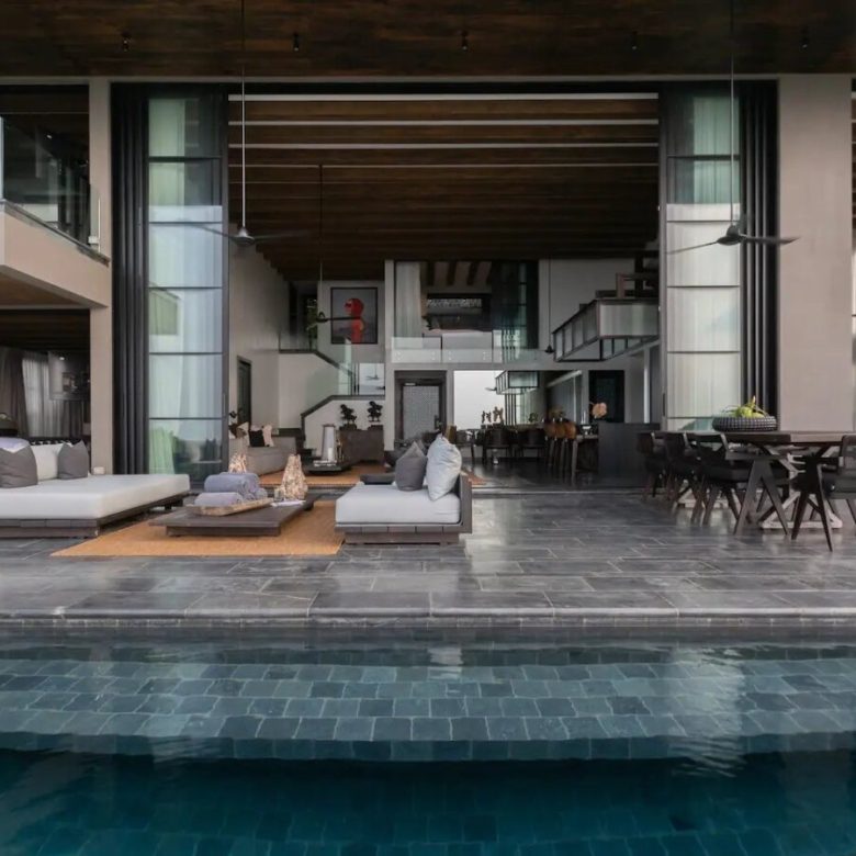 Each of the four spacious bedrooms is a suite with direct sea views, offering a truly immersive experience. Enjoy the 18-meter-long infinity pool overlooking the Gulf of Siam, five-meter-high vaulted ceilings and daily maid service with a personal chef available upon request. The villa is close to Cheong Mon Beach, Fishing Village and Big Buddha Temple.