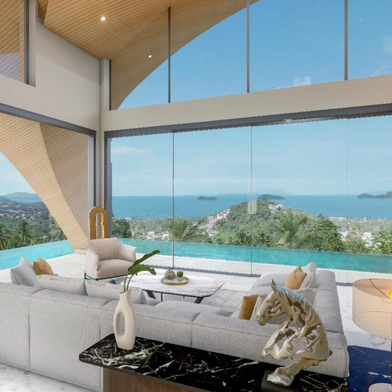 The villa is designed in a unique style which cannot be seen anywhere else on the island. The interiors are a destination in themselves, with the living areas, kitchen, bathrooms, bedrooms, and outdoor spaces