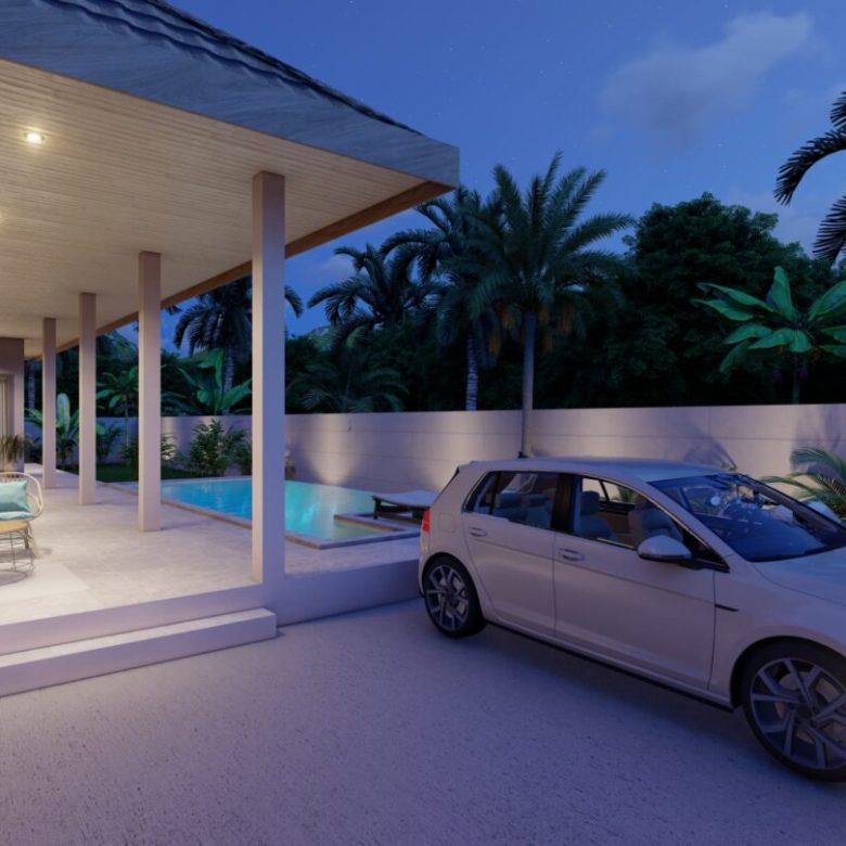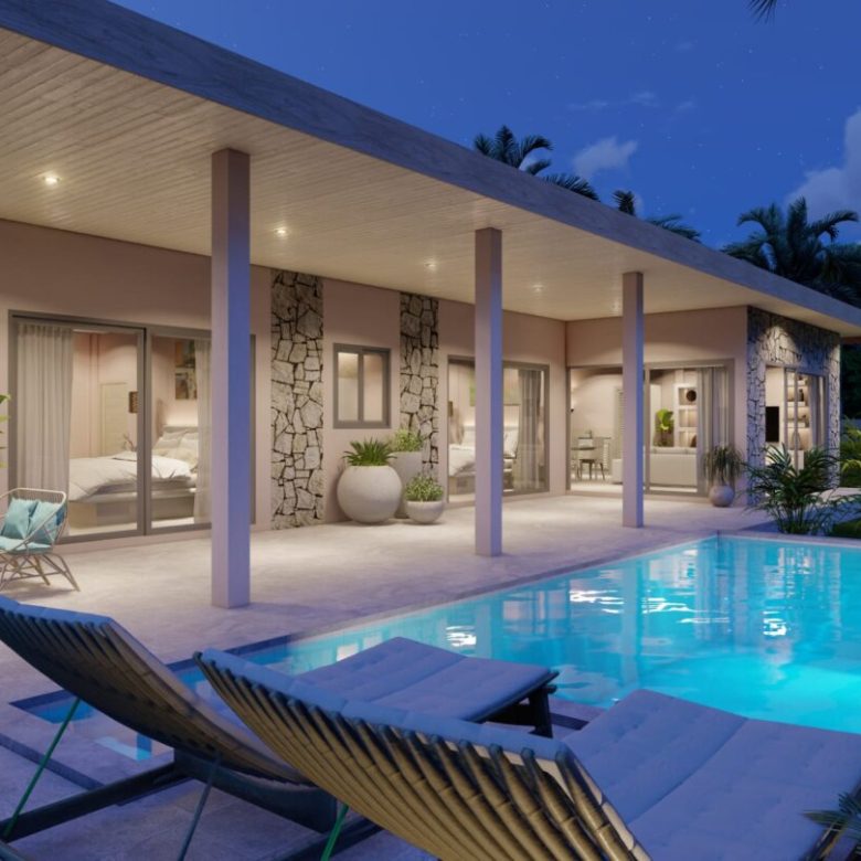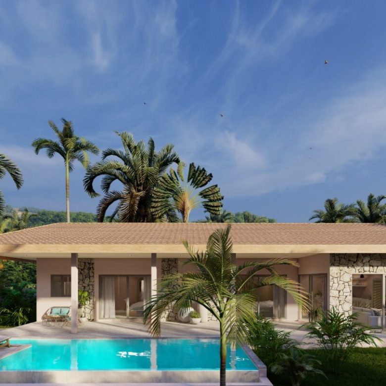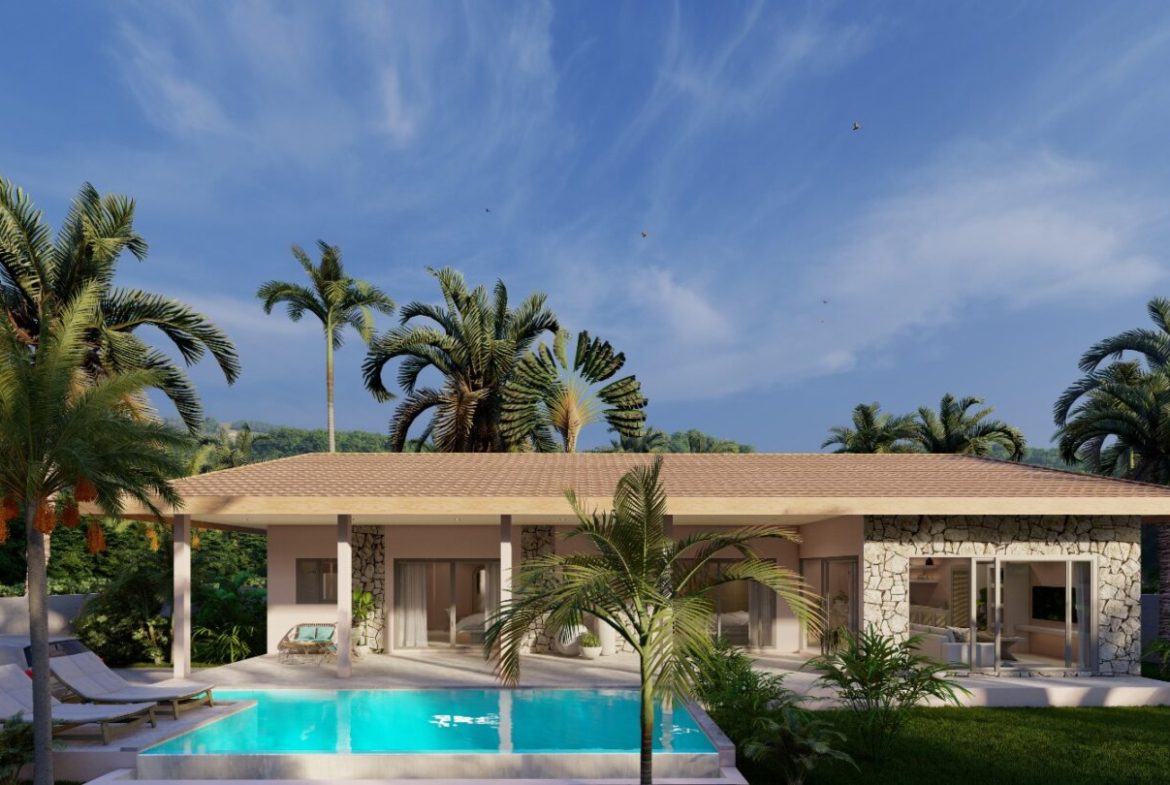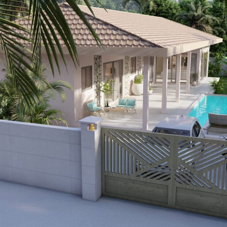 4 beautiful pool villas are being built here not far from the Maenam golf course. The villa exudes a good atmosphere, has a very good architectural style and is fully furnished