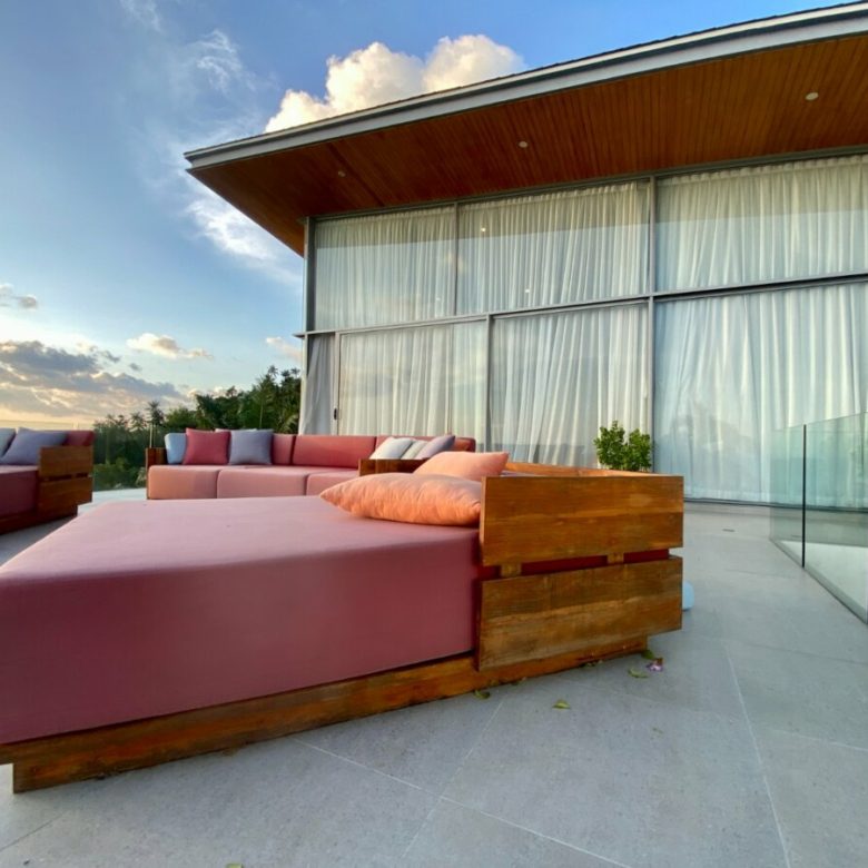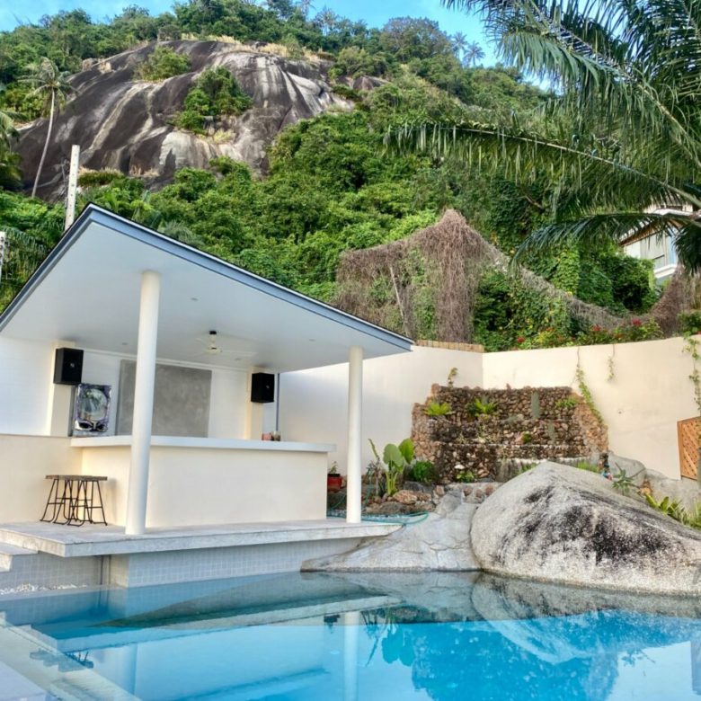 Blending luxurious contemporary style and the beauty of nature, Golden Hour Villa is designed to please your pleasure. One of Koh Samui largest elephant rocks provides Golden Hour villa the ideal privacy. A massive l-shaped swimming pool is accompanied by sun drenched loungers and a poolside barbecue â perfect for sunset cocktail parties or casual family dinners. Watch the sun slip over the horizon in this idyllic slice of paradise.
