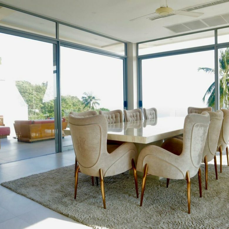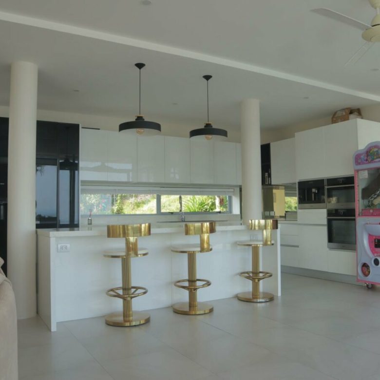 The villa boasts 5 spacious bedrooms, each with ensuite bathrooms and elegant furnishings. The villa also features a dedicated children’s room, perfect for families with young children. The property is fully equipped with state of the art amenities, including a private game room, gym, sauna, and massage pavilion. Villas central level forms the common space where the habitats converge and enjoy each other company – the living, dining, and communal areas are located here. These open-plan areas feature high ceilings and high-quality window systems, allowing them to seamlessly connect with the expansive outdoor sundeck. Outside, guests can enjoy a outdoor\ sunken seating area and swim up bar .