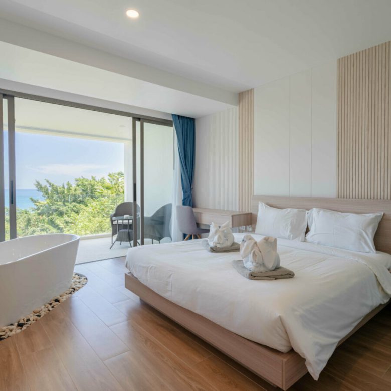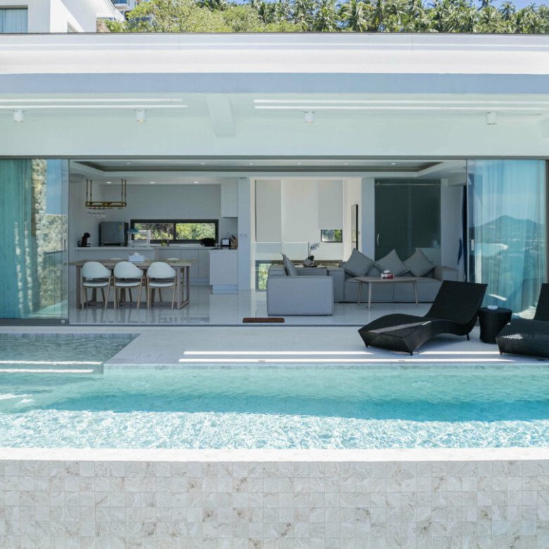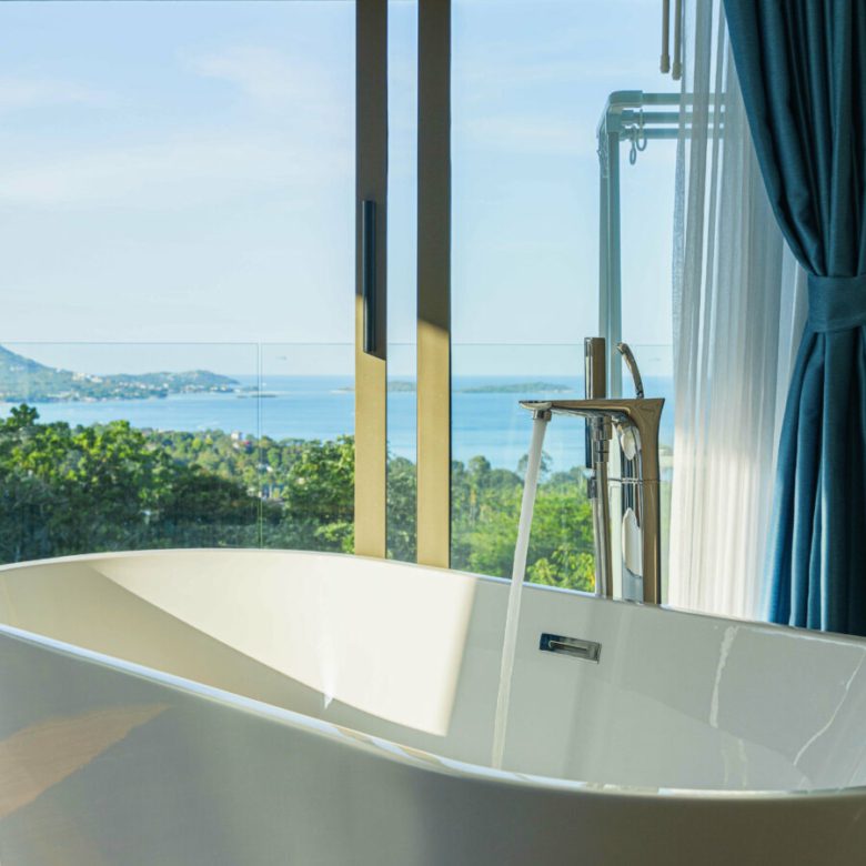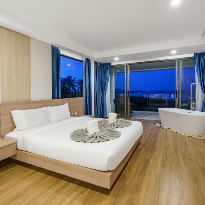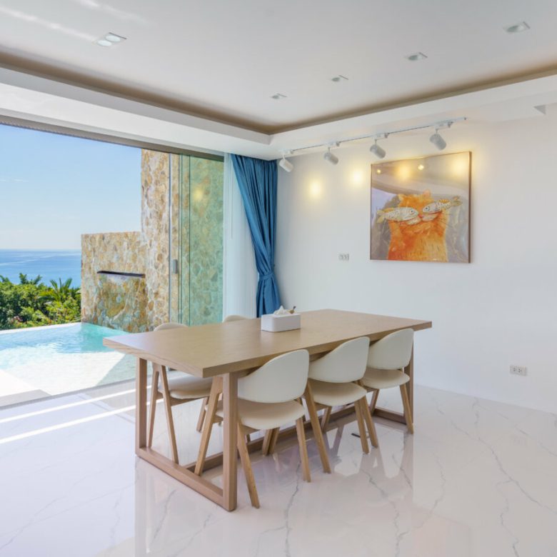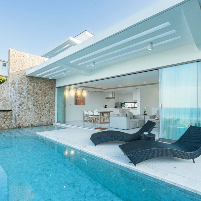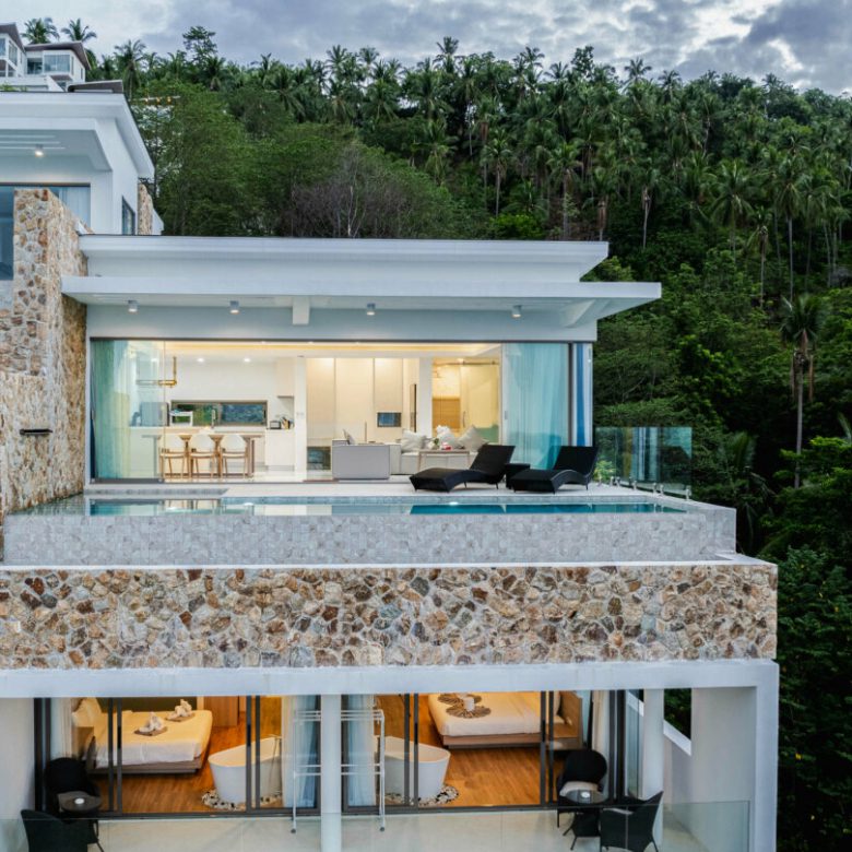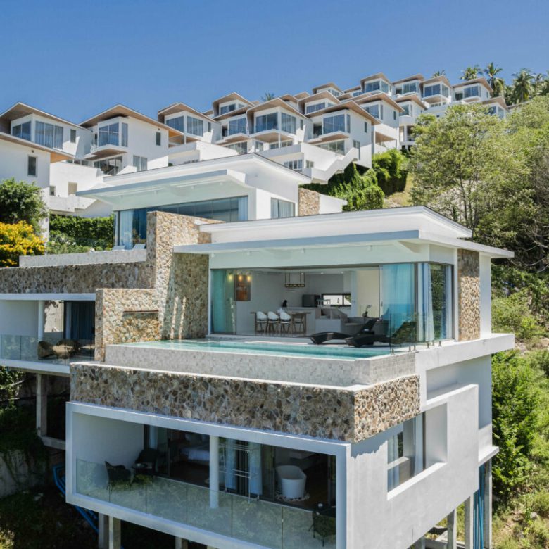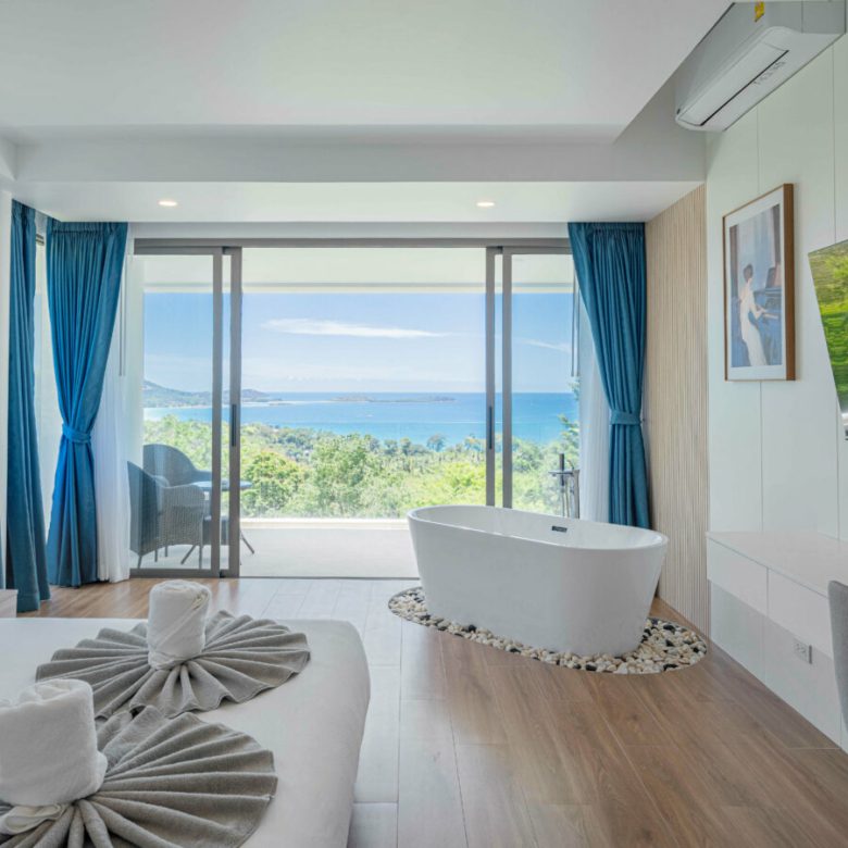 This gorgeous semi-detached three bedroom villa captured one of the most outstanding views in the east of the island . Located in a community 5 minutes drive from Chaweng Beach , this brand new villa completed in 2023. Features two spacious Seaview bedrooms with stunning Seaviews and a kids bedroom with bunk beds.