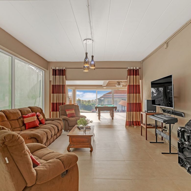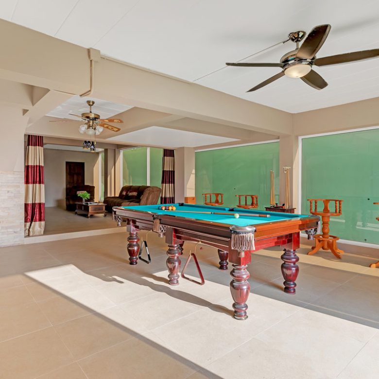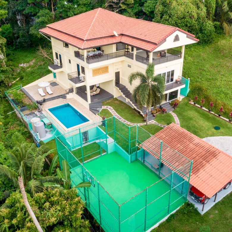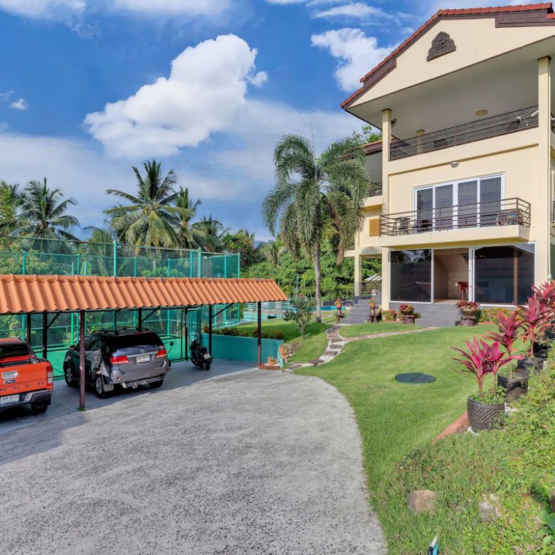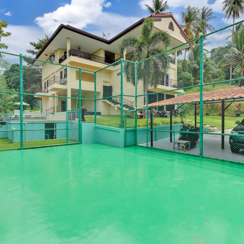 - Swimming pool, garden, lighted basketball court, and three-car covered car park