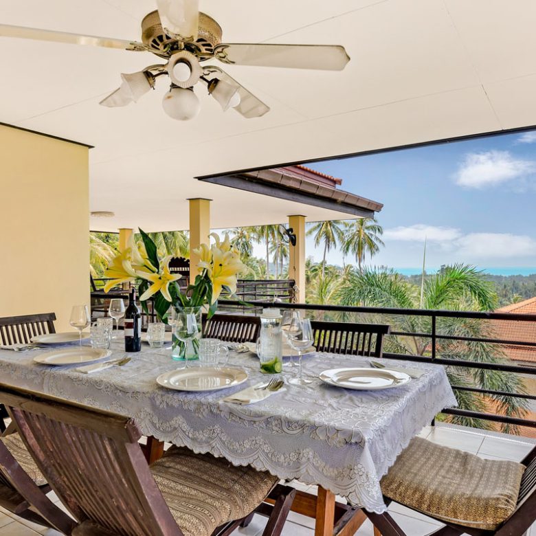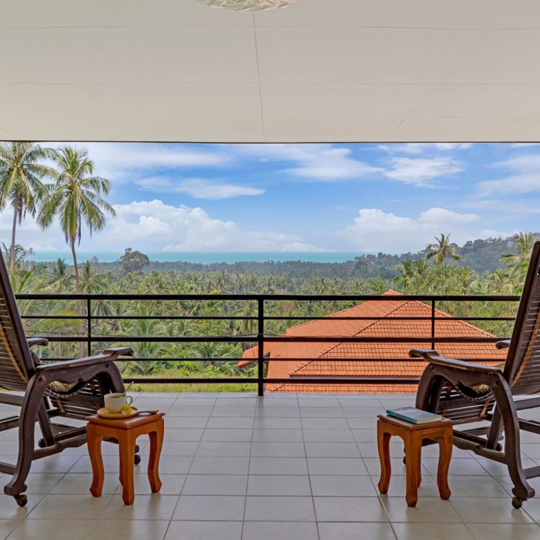 - Massive terrace with expansive sea views, mountain views, and views of the lush coconut forest