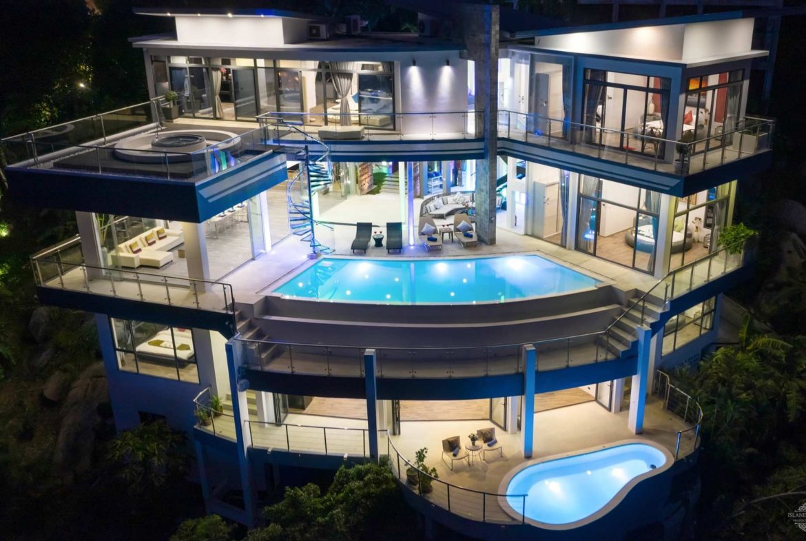 Perched on the side of the mountain above Chaweng Noi, the five-bedroomed Luxury Seaview Villa boasts not only spectacular views, but also modern design in a prime location. The popular and vibrant beaches of Chaweng and Lamai are only a short drive away, yet with the villaâs elevated position, youâre rewarded with privacy and tranquillity â the best of both worlds. If youâre after quieter beaches, nearby Chaweng Noi, Coral Cove and Silver Beach offer seclusion and charm. Chaweng Noi has now become the Beverly Hills of Koh Samui, the hillside is home to the islands most spectacular multi million dollar properties & land prices are increasing year by year. The stunning views, great infrastructure & ease of access to both Chaweng & Lamai make it a firm favourite for both investors & holiday makers