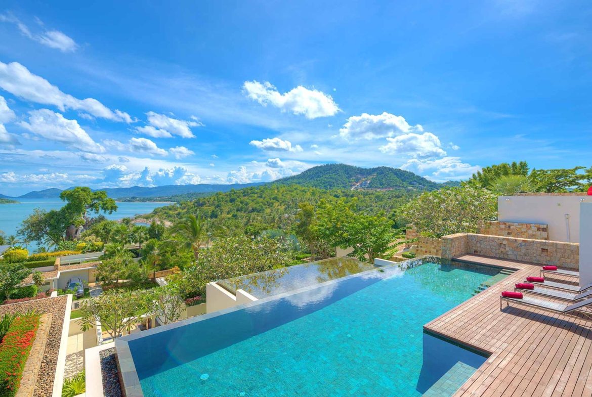 Stay in a luxury family villa for an unforgettable holiday. The open plan living area is fronted by a large infinity pool and offers an enclosed private gym with stunning views over the bay. Villa 15 has four large en-suite bedrooms with king sized beds, all with freestanding baths and separate showers. Each bedroom has an outside seating or daybed area for quiet time or your daily yoga routine. There are two sun deck areas above the lounge for those wishing to worship the sun during their stay or enjoy a sunset cocktail. For keen cooks there is a fully operational outdoor kitchen and BBQ area. The home cinema is equipped with a large plasma screen, DVD player and surround sound. A large garden is great for five-a-side football or badminton if you need a break from lounging by the pool.