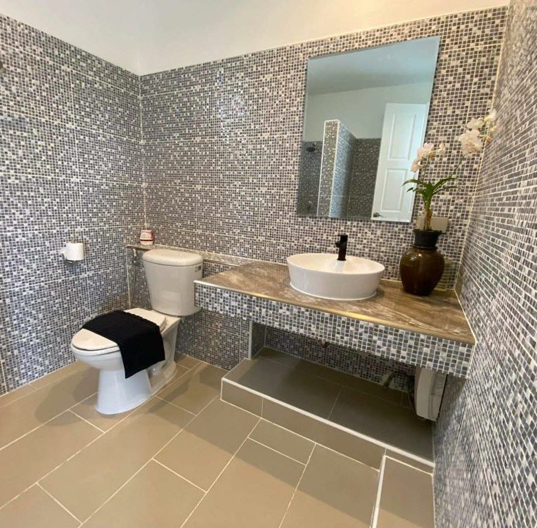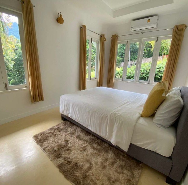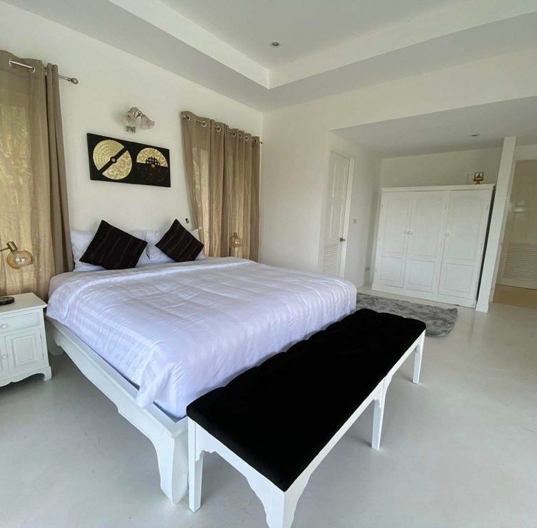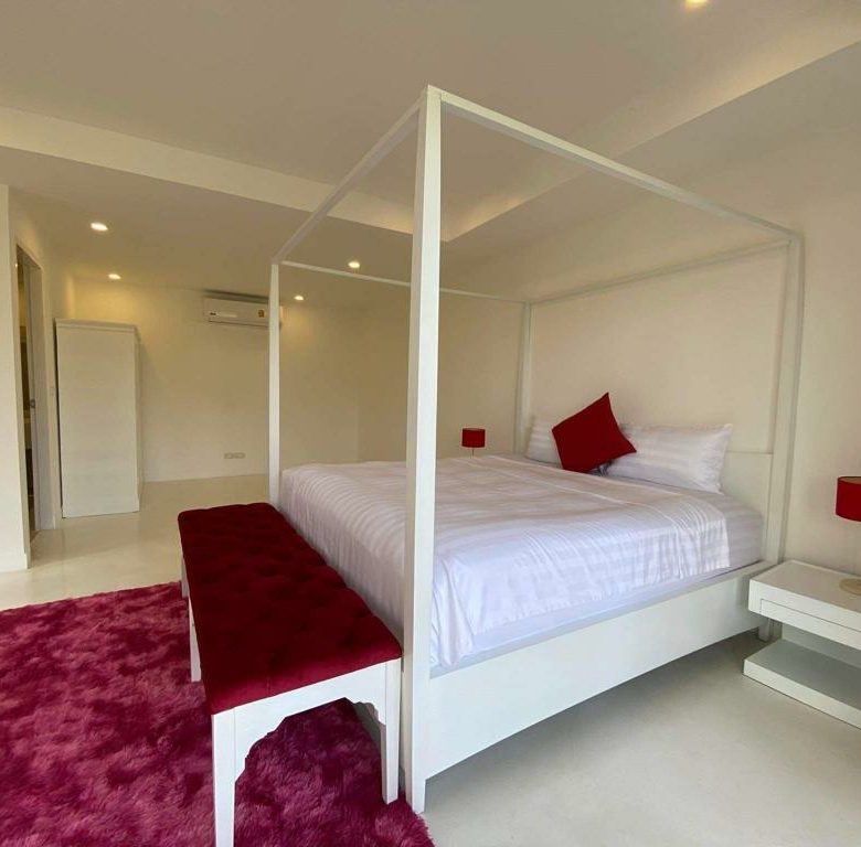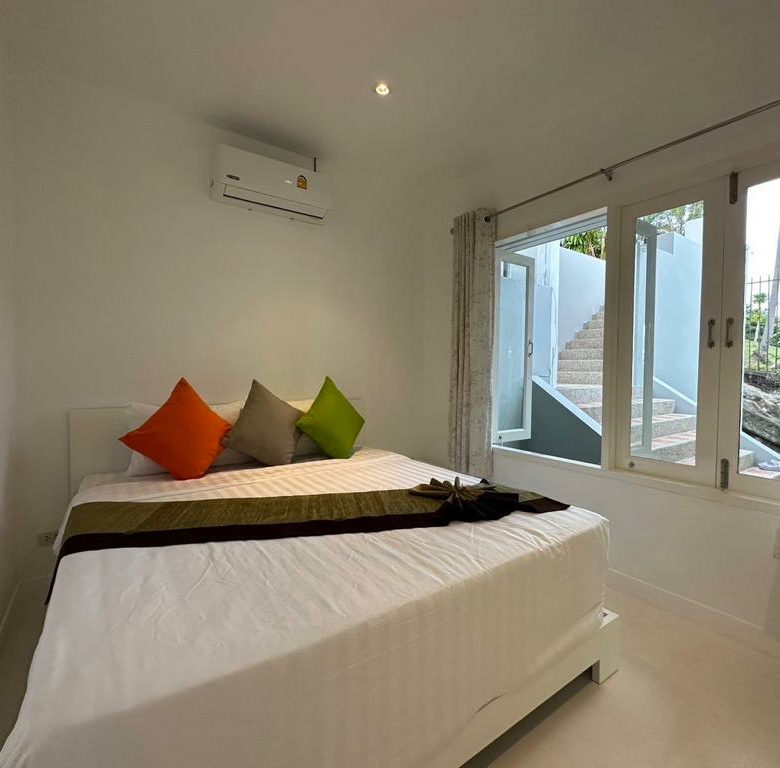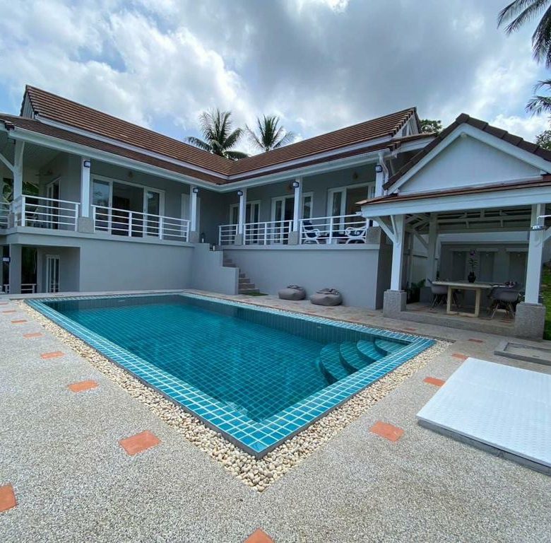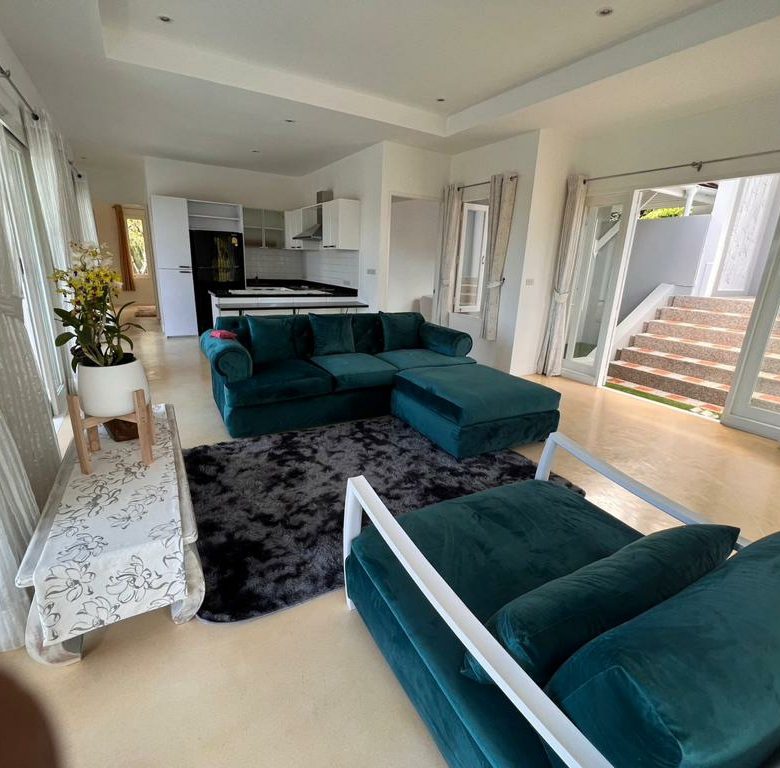 This two level mountain and partial sea view Koh Samui property comprising 4 bedrooms and 3 baths for sale sitting on 708 square meters of land with the Villa occupying 598 square meters, is nestled on a