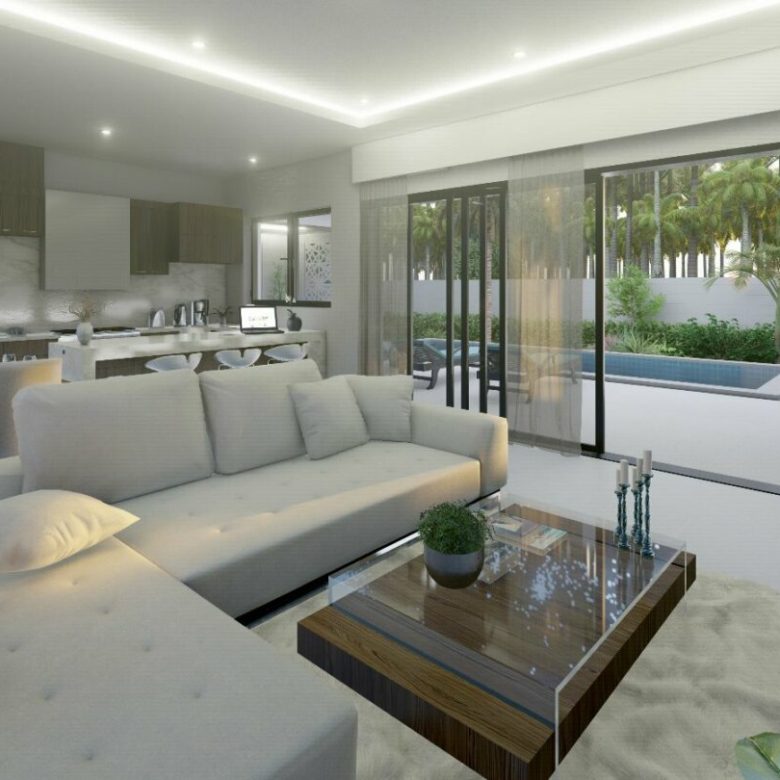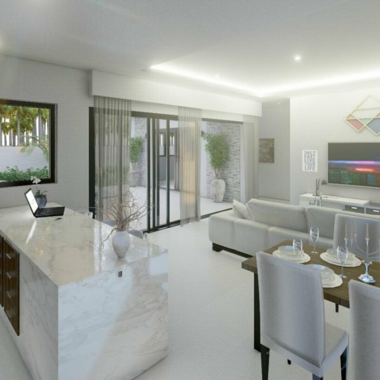 Located in the coconut district of Lamai, these 6 modern villas are built on a plot of 411 m² with a living area of 115 m² with very easy access. Only 2 villas are still available.