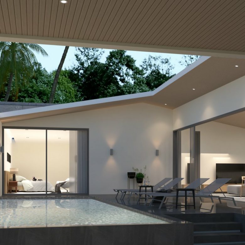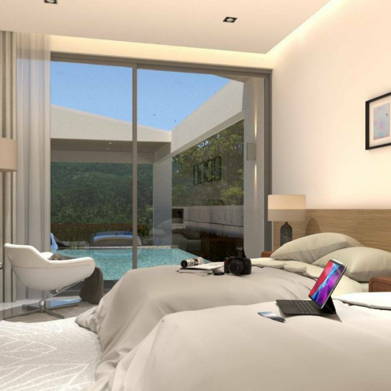 This beautiful villa is being built in the slightly rising mountains of Mae Nam. In a tropical garden surrounded by palm trees. The villa has 3 bedrooms, 3 bathrooms and a guest toilet. a kitchen a living room from where I can look out over my pool and enjoy the sea view. There is a garage that has space for 2 cars. the villa is built to relax.