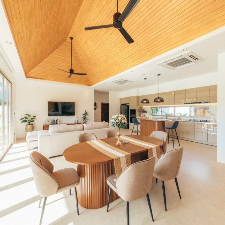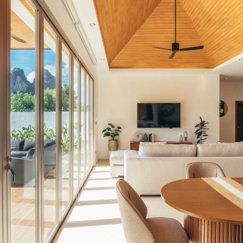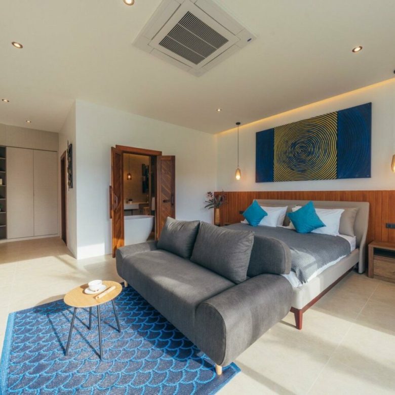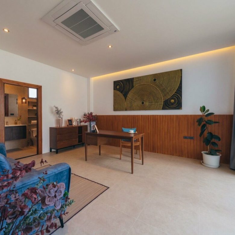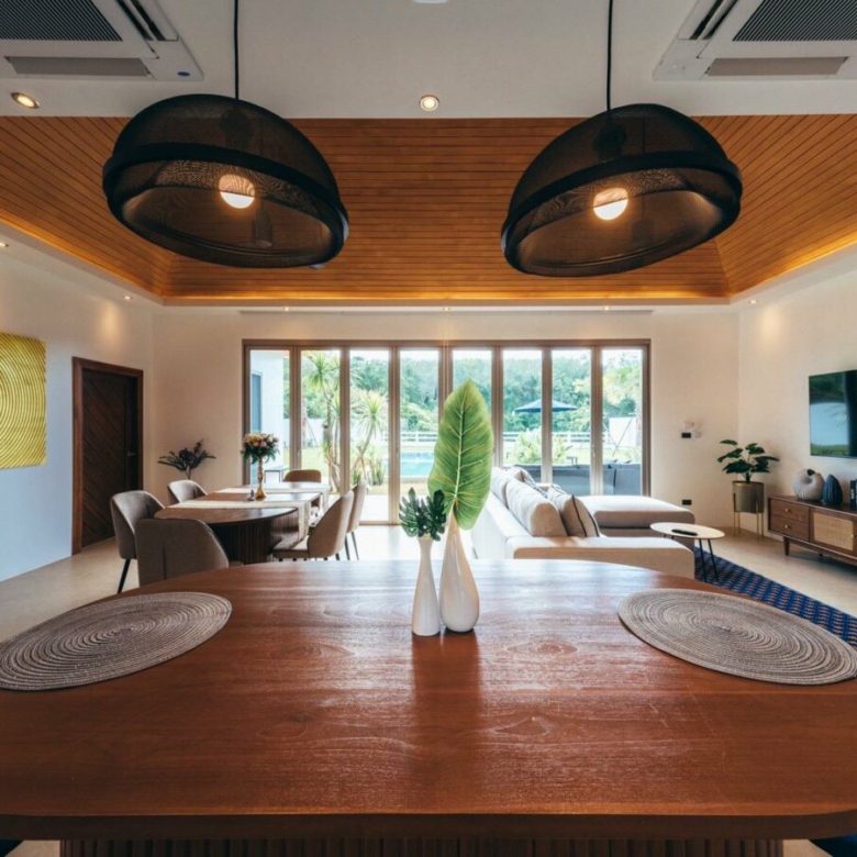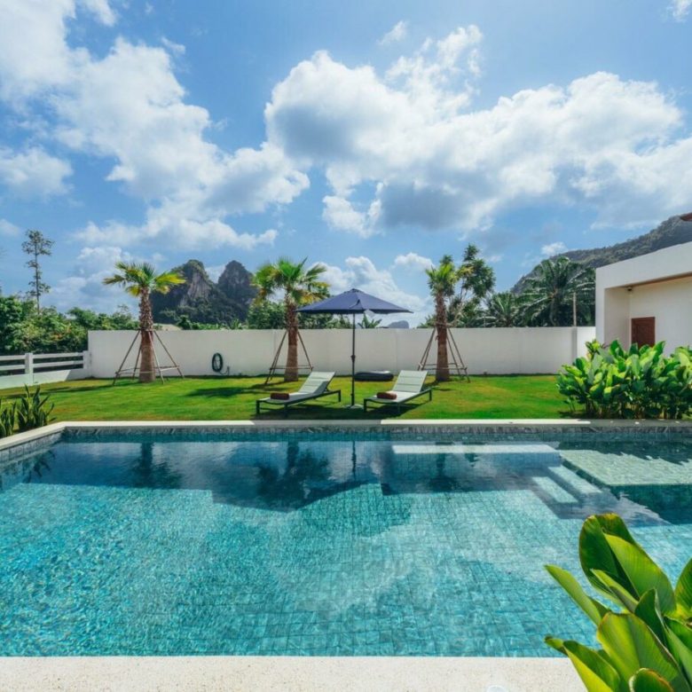 Located in Ao Nang subdistrict, this villa has 800 square meters of land and 320 square meters of living space. Decorated in modern Balinese style. it comes fully furnished we with highly quality materials such as real teak wood imported from Japan. The 4 meters high ceiling makes the villa look airy and very spacious. The open living room is offering a stunning view on the pool and jungle surroundings.
