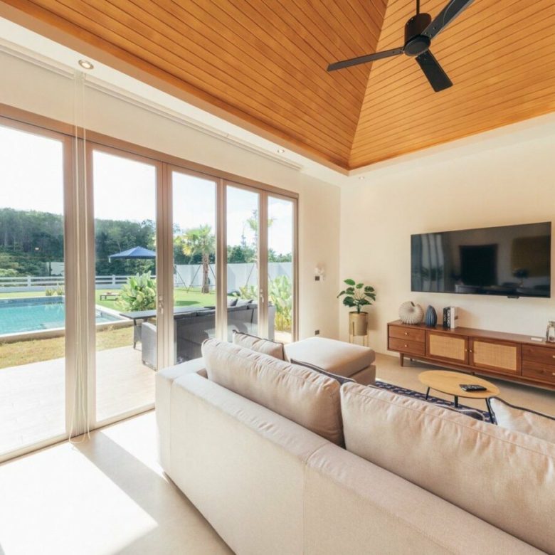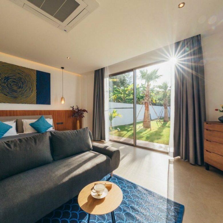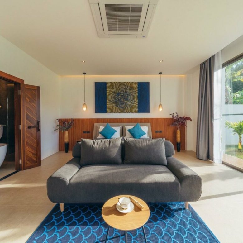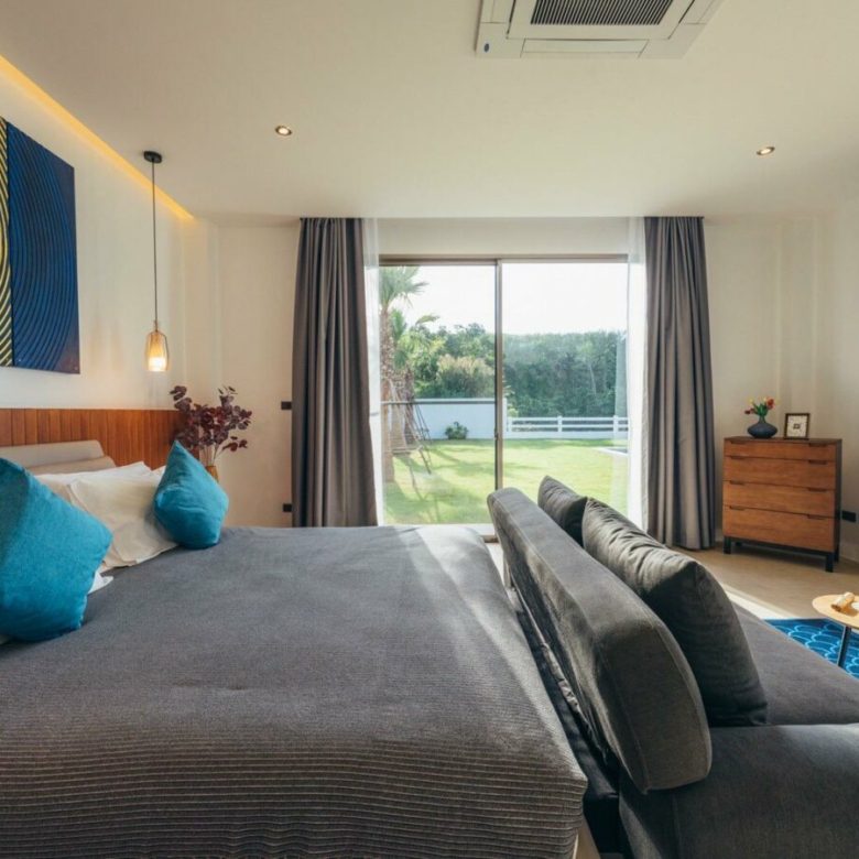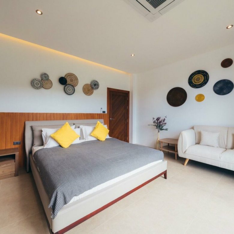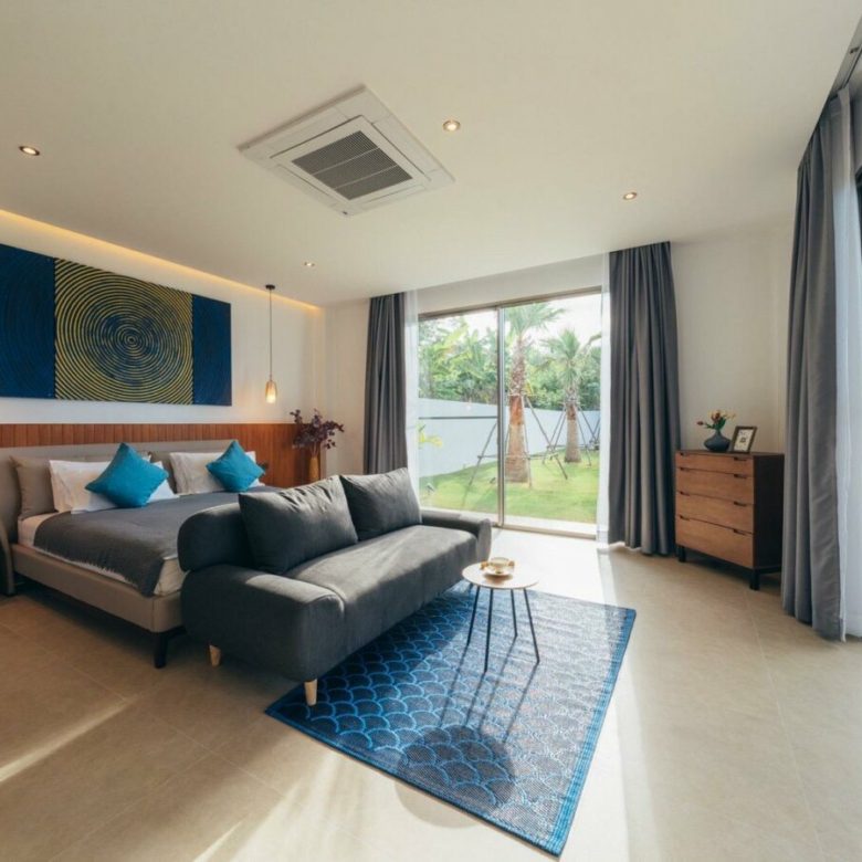 Located in Ao Nang subdistrict, this villa has 800 square meters of land and 320 square meters of living space. Decorated in modern Balinese style. it comes fully furnished we with highly quality materials such as real teak wood imported from Japan. The 4 meters high ceiling makes the villa look airy and very spacious. The open living room is offering a stunning view on the pool and jungle surroundings.