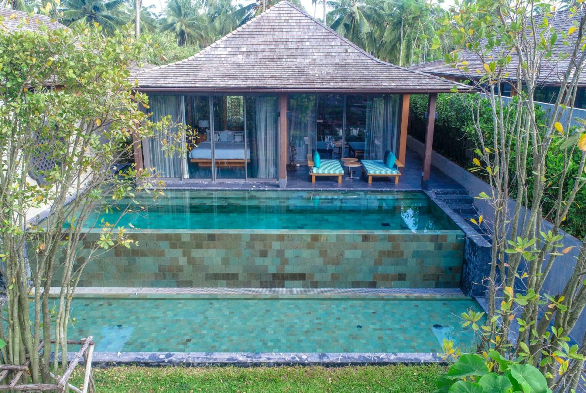 The Luxury Pool Villa balances the style and hospitality of an intimate hotel with the space and comfort expected of a luxury residence. The 250-280 Sq.m. Two-Bedroom Luxury Pool Villa further extends past the beachfront creating the ideal paradise escape with its own tranquil tropical water garden. Equipped with a private infinity-edge swimming pool, living room with a charming kitchen, pantry, dining table, a lavish en suite guest bedroom, and a generous master bedroom overlooking the tropical water garden.