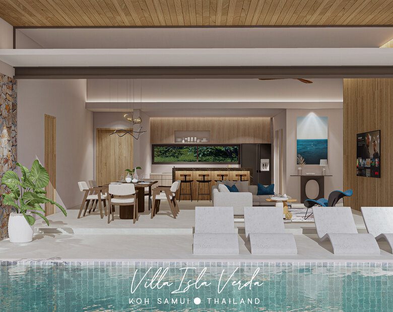 Nestled in a serene part of Koh Samui, Isla Verda Villa is a thoughtfully designed 3-bedroom, 4-bathroom home that perfectly balances compact scale with open-plan luxury. Set on plots ranging from 400mÂē, with a spacious 294 mÂē living area, this villa is ideal for those seeking privacy, panoramic sea views, and effortless tropical living.