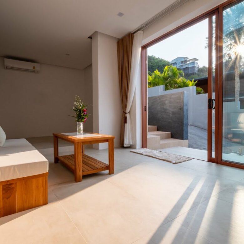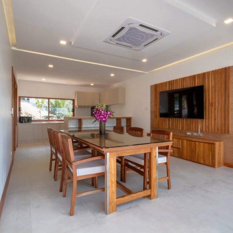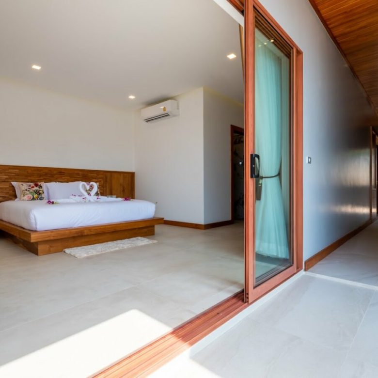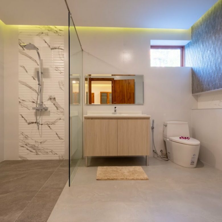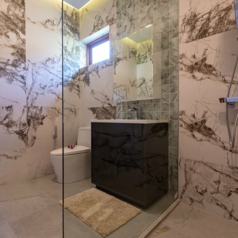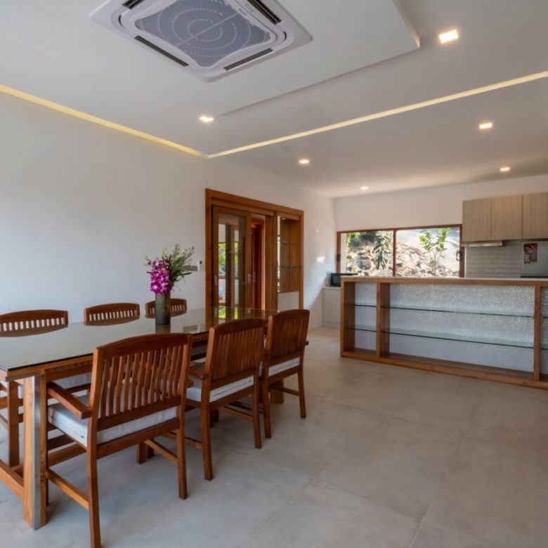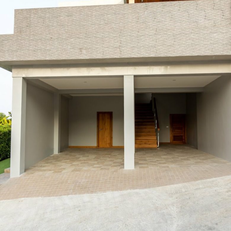 This 2 Level villa sitting on 357 sqm land with a built area of 410 sqm has 1 bedroom on the ground floor with bath and toilet and accessed through the garage with a private back door leading to a small garden, ideal as a house keeper quarters. There are 3 Bedrooms on upper floor. The lower bedroom has a small living room and kitchen sink with a fridge and space for a dining table, bathroom and shower with own entrance to the outside. Itâs a mini apartment.