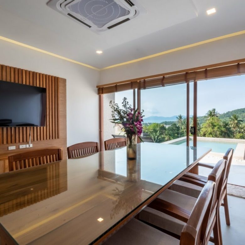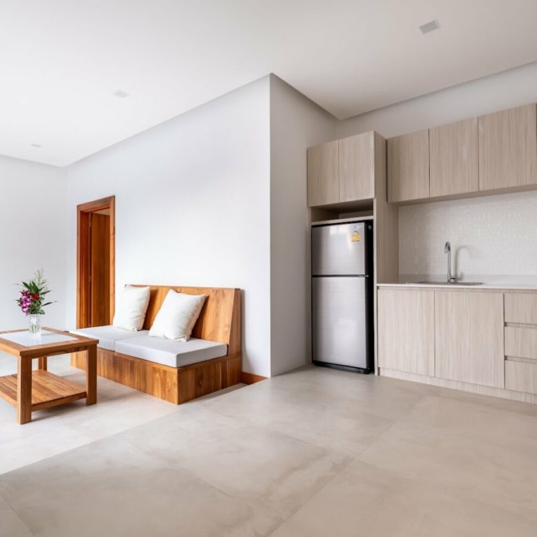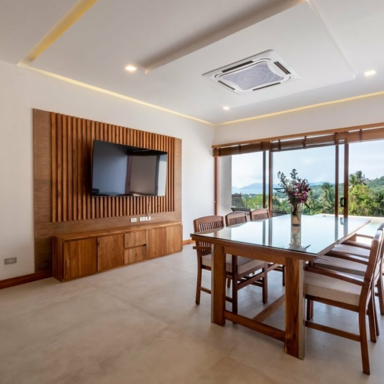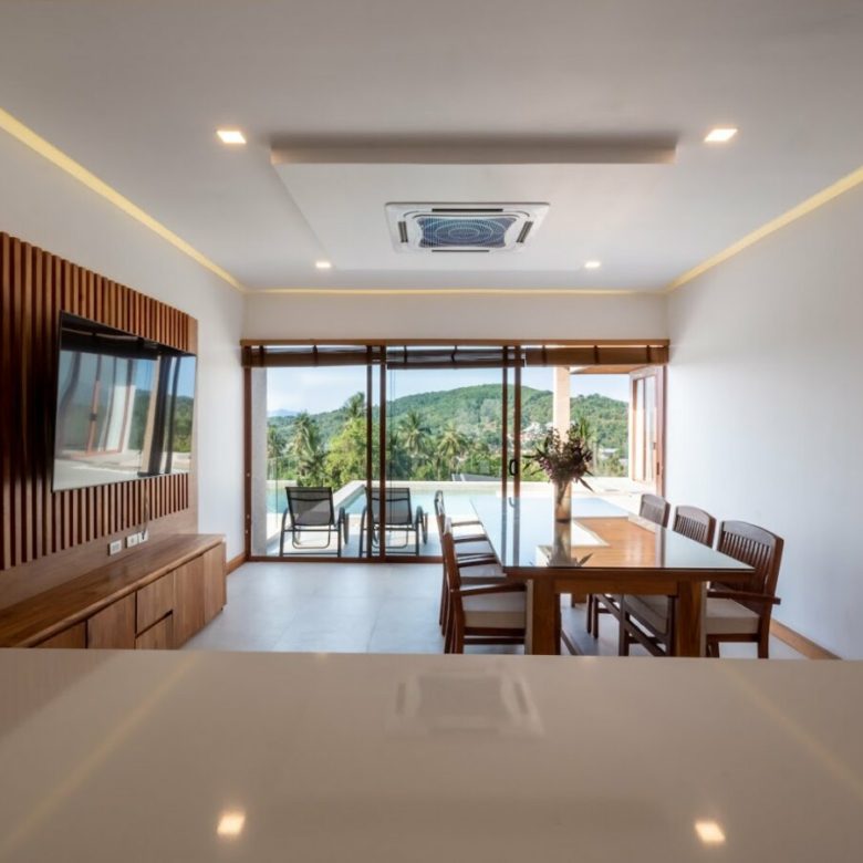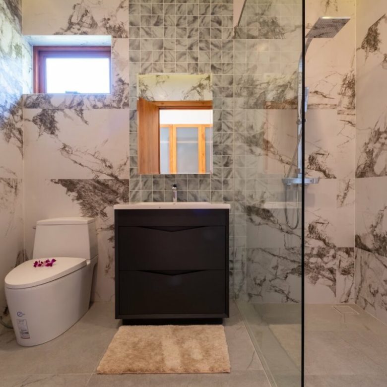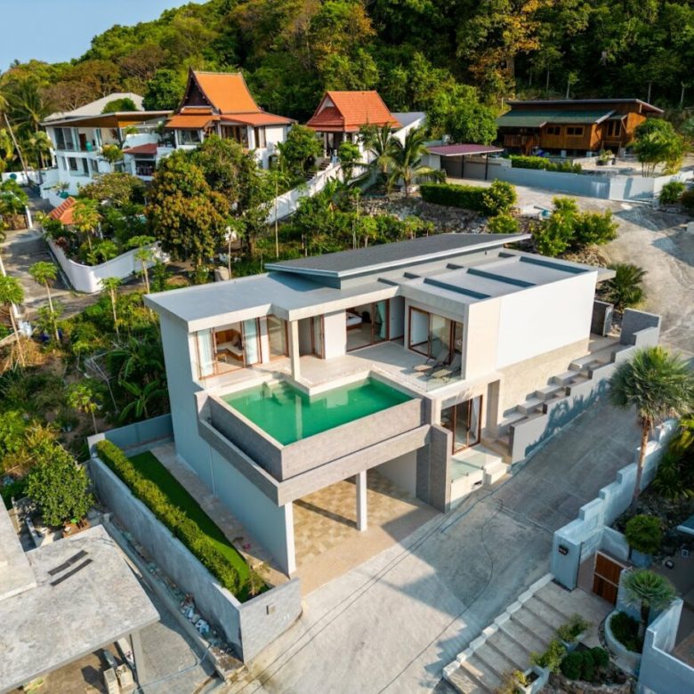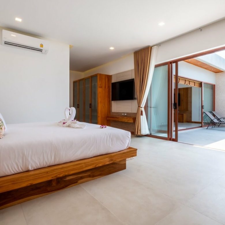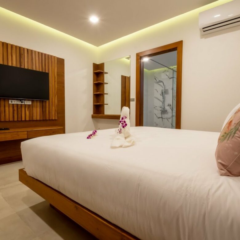 This 2 Level villa sitting on 357 sqm land with a built area of 410 sqm has 1 bedroom on the ground floor with bath and toilet and accessed through the garage with a private back door leading to a small garden, ideal as a house keeper quarters. There are 3 Bedrooms on upper floor. The lower bedroom has a small living room and kitchen sink with a fridge and space for a dining table, bathroom and shower with own entrance to the outside. Itâs a mini apartment.