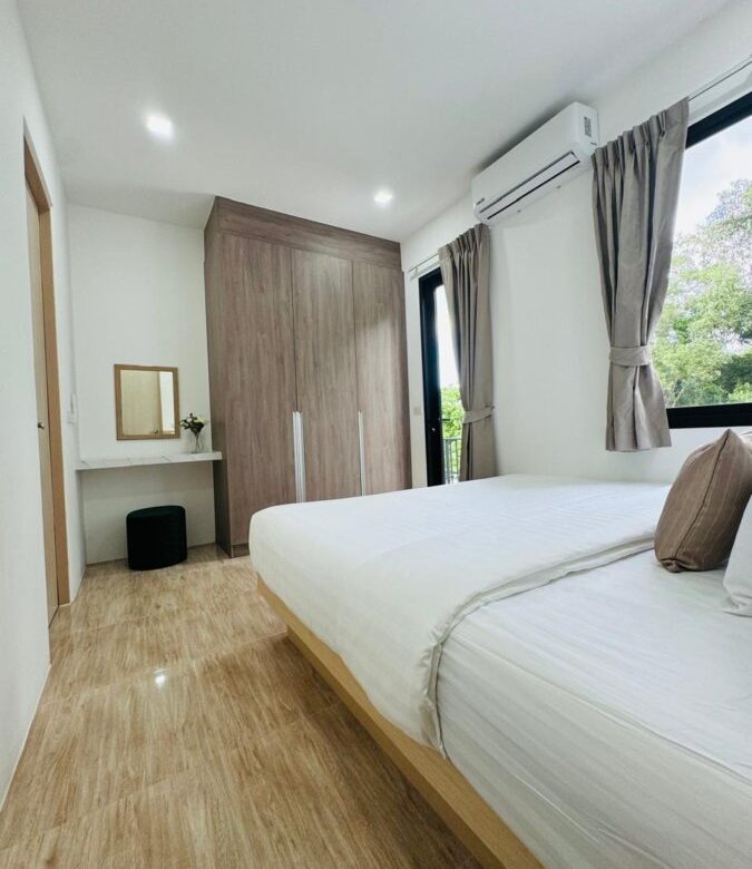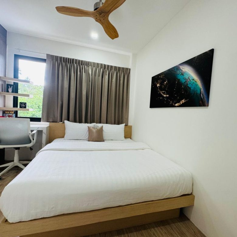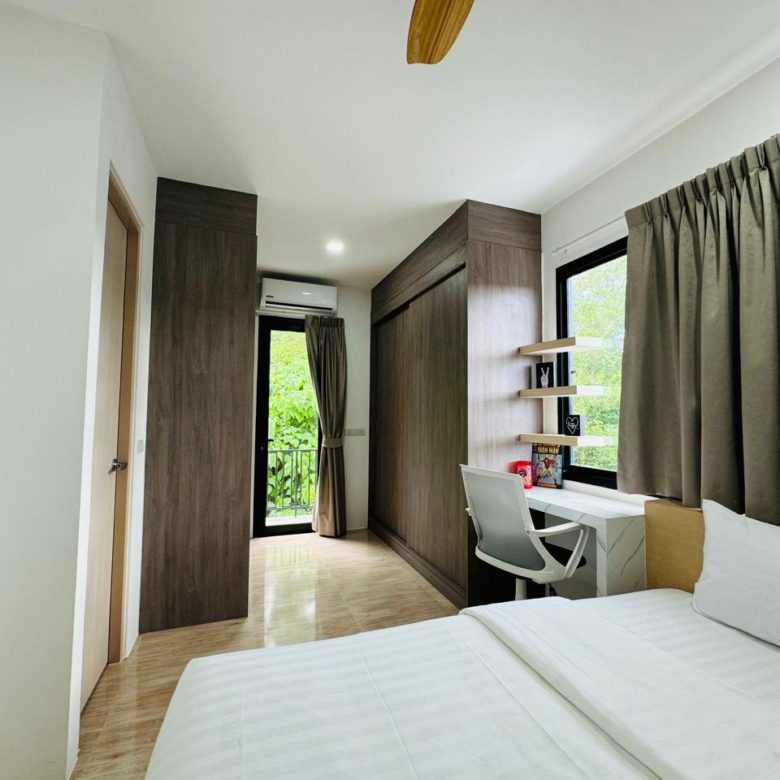 âĒ Three Private Bedrooms: All with king-size built-in beds, large closets with drawers, blackout drapes, premium pillow-top mattresses, desks, split aircon units, and walkout balconies overlooking the pool and forest ðģð