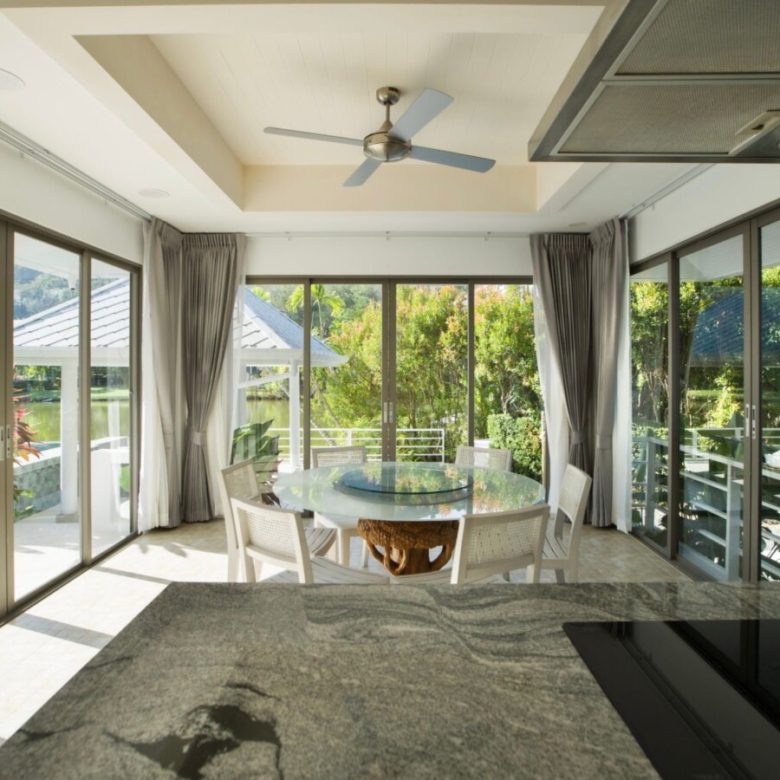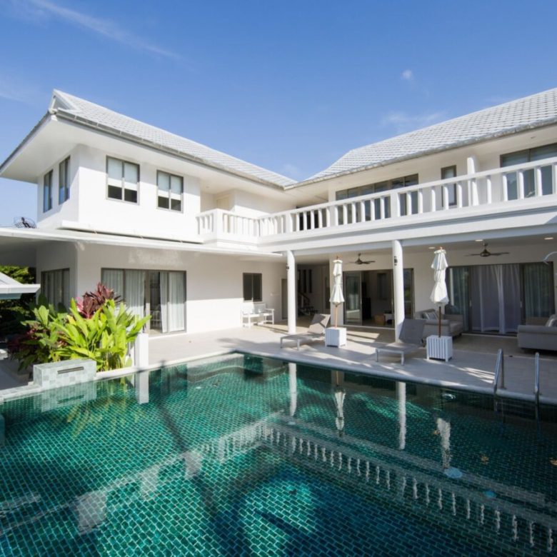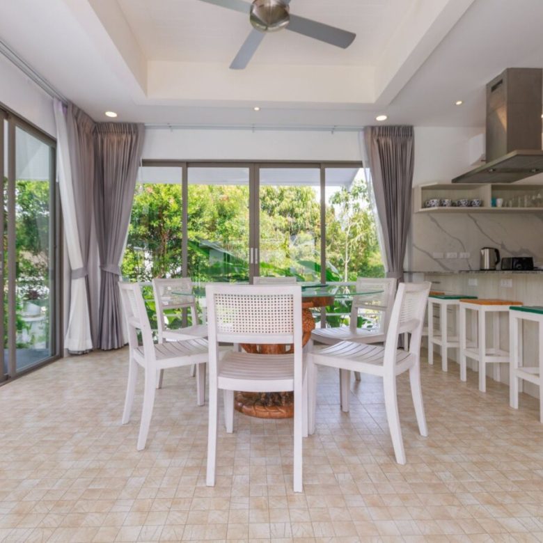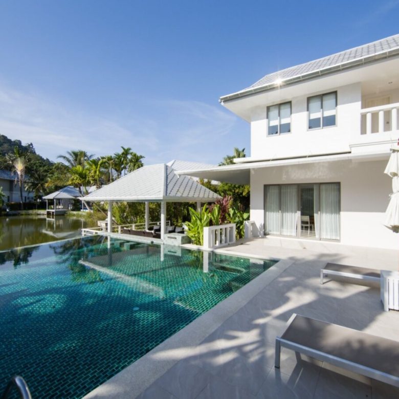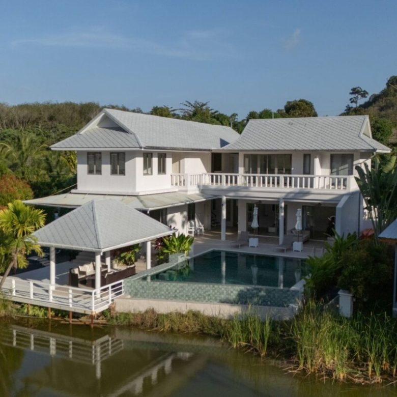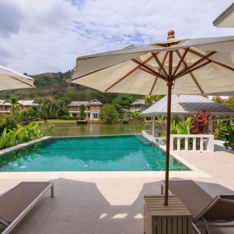 Lakeside 5 Bedroom Private Pool Villa, 5 minutesâ drive to the beach (Nai Thon Beach, Banana Beach, Nai Yang Beach). Spacious, fully fresh renovated villa with a large private saltwater swimming pool and a large deck overlooking a natural lake.
