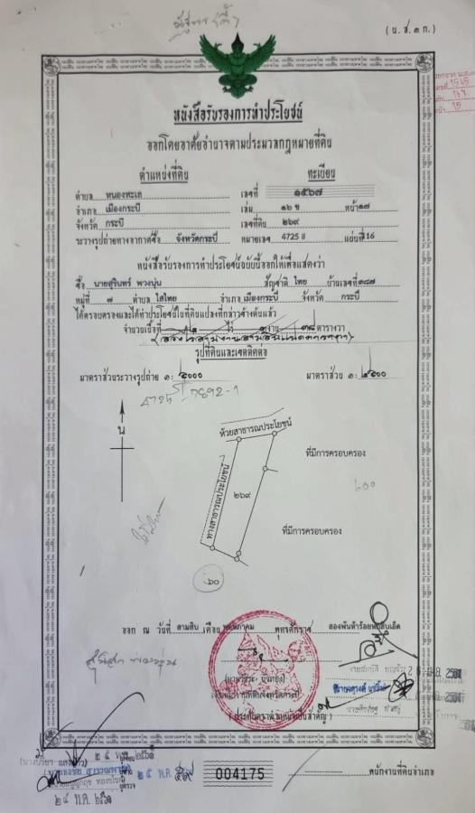 A beautiful plot located on the main road leading into Soi Laemsom, Nong Thale, Mueang Krabi. The land offers a unique natural setting — backed by a mountain and bordered by a natural water stream along the side.