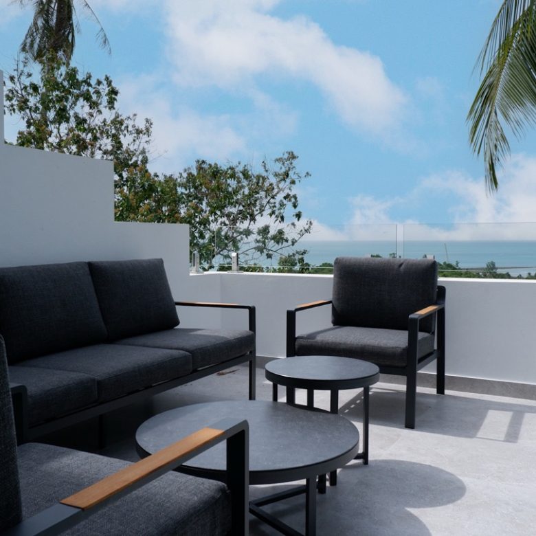 The lower level adds significant accommodation capacity and versatility, with five en-suite bedrooms, including both sea-view and jungle-view rooms, as well as an independent bedroom with private access, ideal for staff or separate rental use. A large open-plan living and dining area connects to multiple terraces, a private swimming pool, and a pool deck, while additional kitchen and laundry facilities support both residential and rental operation. This level contributes approximately 411.4 square meters of developed area, bringing the total interior living space to 502.4 square meters.