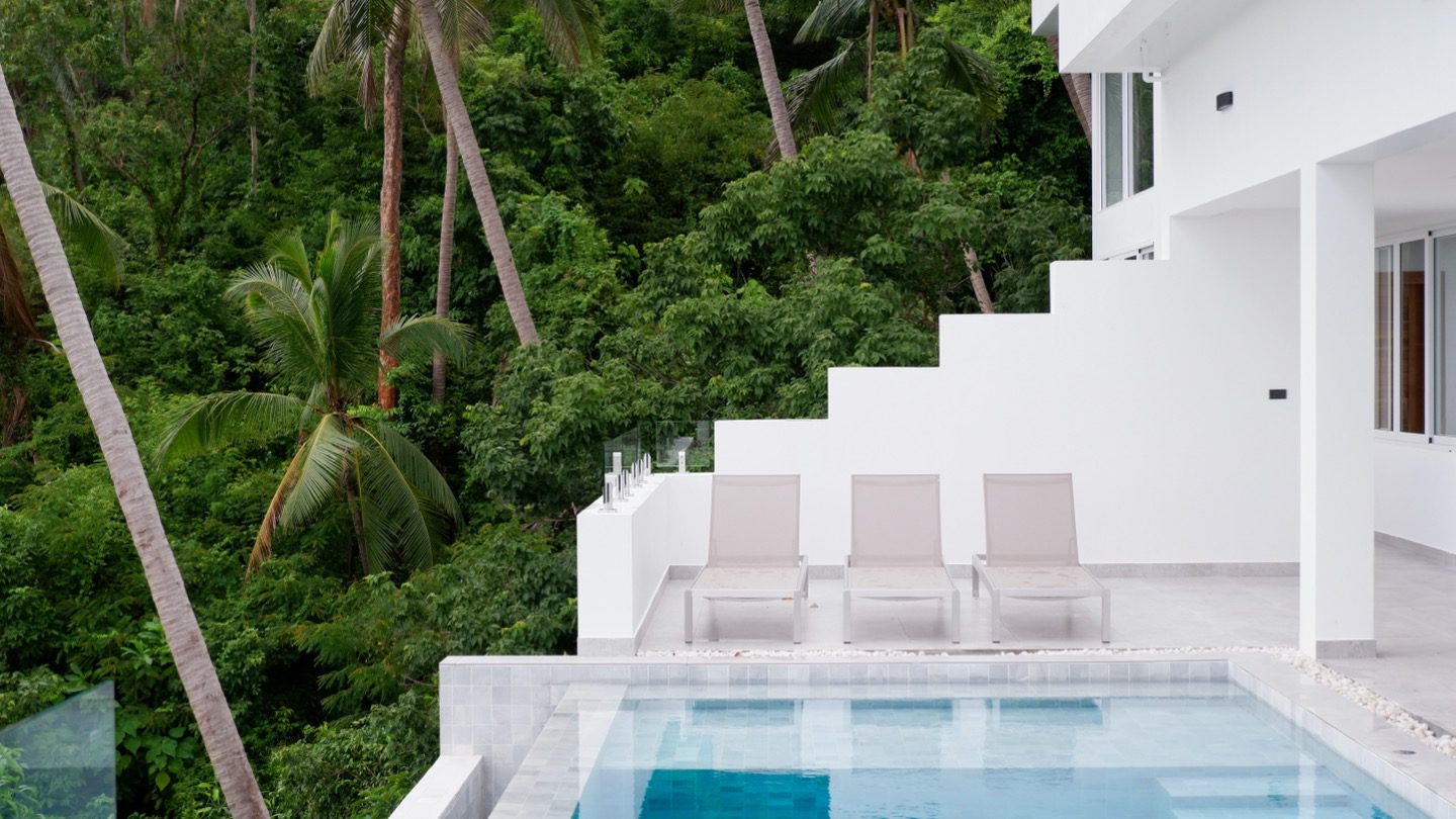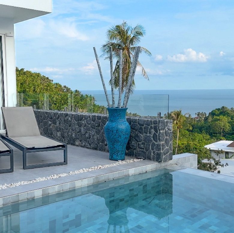 Set in the highly desirable Lamai area of Koh Samui, this expansive dual-level pool villa offers a rare combination of generous living space, flexible layout, and strong long-term investment potential. Positioned on a 1,126 square meter land plot, the property enjoys sweeping sea views on one side and lush jungle views on the other, creating a tranquil tropical environment with excellent privacy and natural airflow.