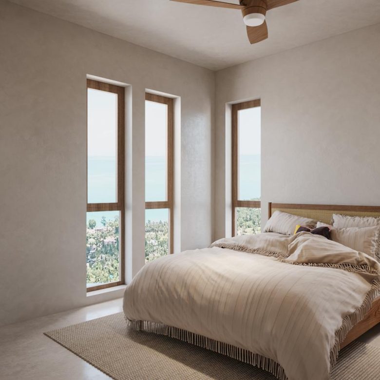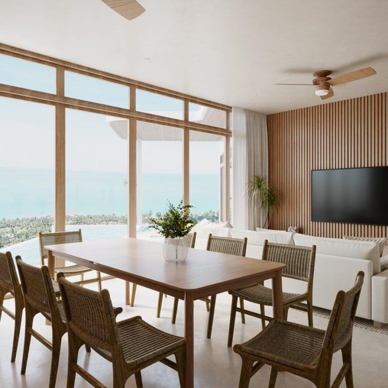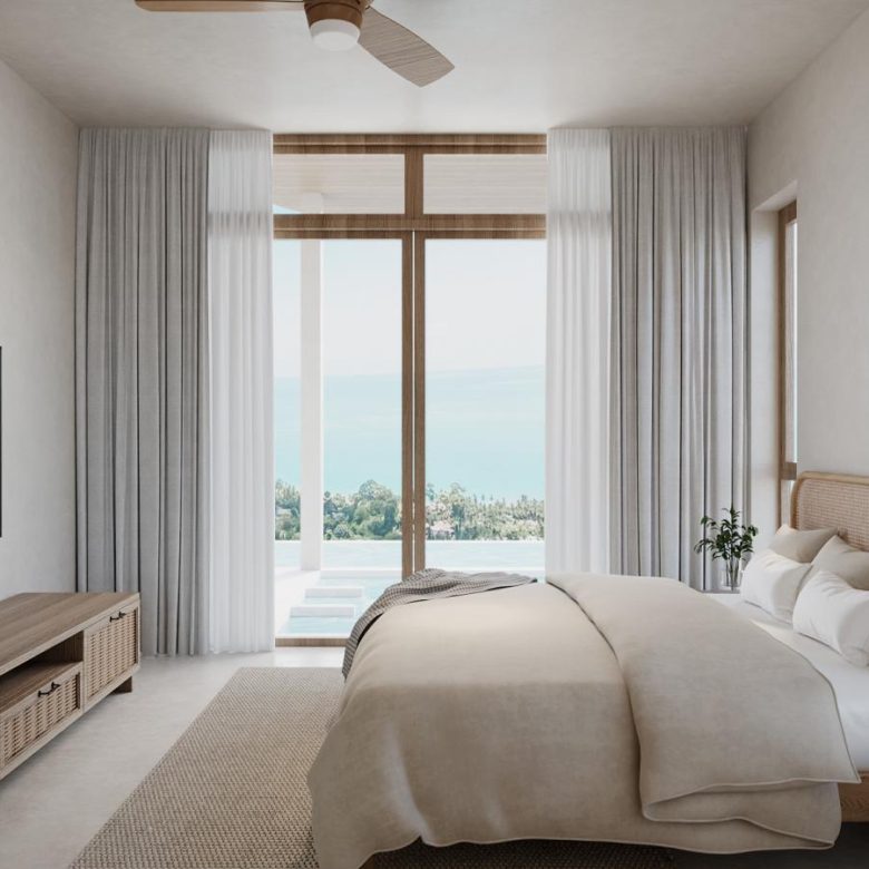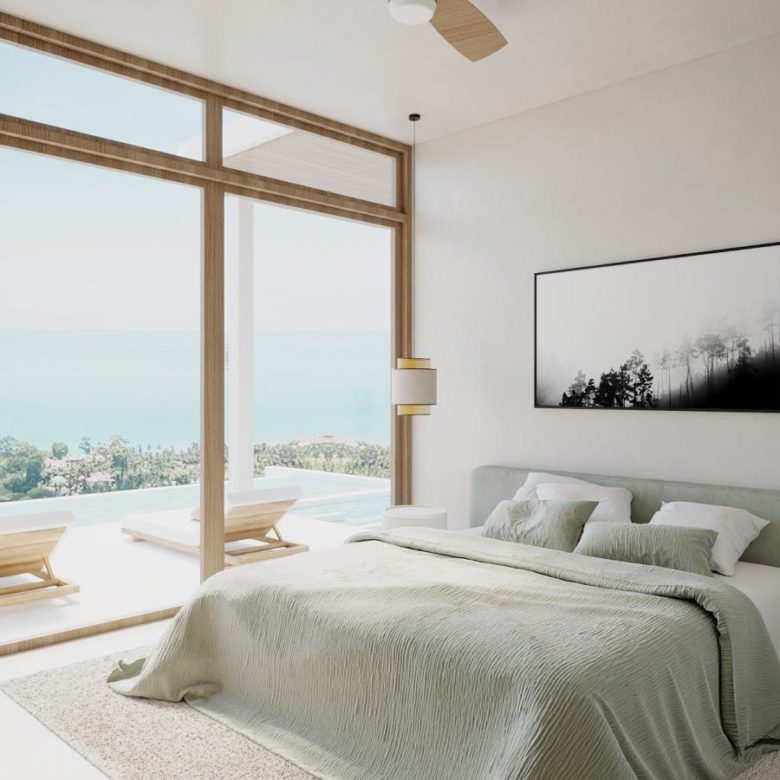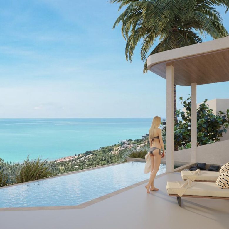 Nestled in the hills of Bophut, this three-bedroom sea view villa offers a rare blend of elegance and convenience. Set on a 370 sqm plot, the property enjoys a 180° panoramic outlook across Koh Samuiâs turquoise waters and lush green jungle, capturing the island at its most picturesque.