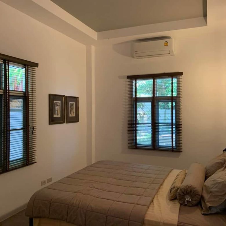 🌿Nestled in tropical and exotic surroundings, this magnificent two-bedroom villa offers an idyllic living environment. With its spacious living room, well-equipped open-plan kitchen and an adjoining room currently used as a Thai kitchen that could be converted into an office, this villa offers a comfortable and functional living space.