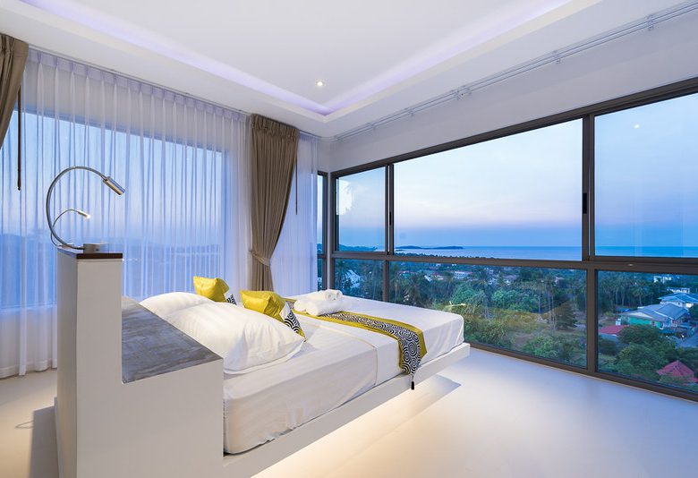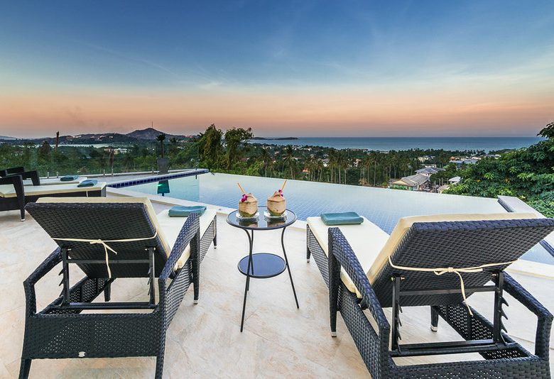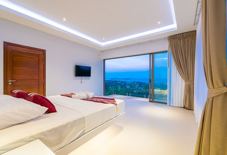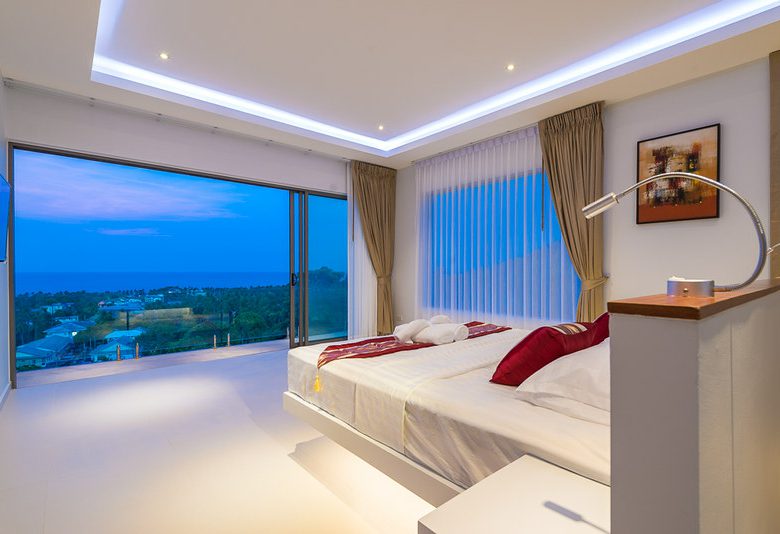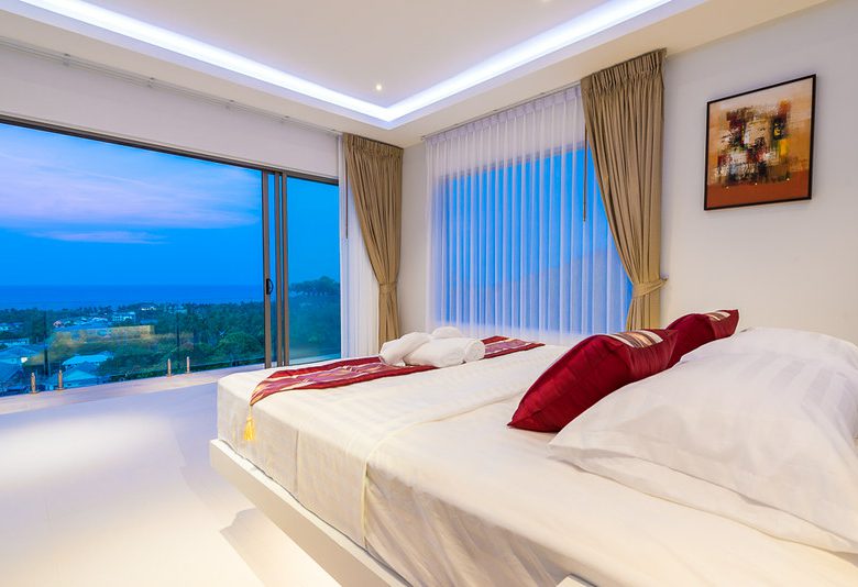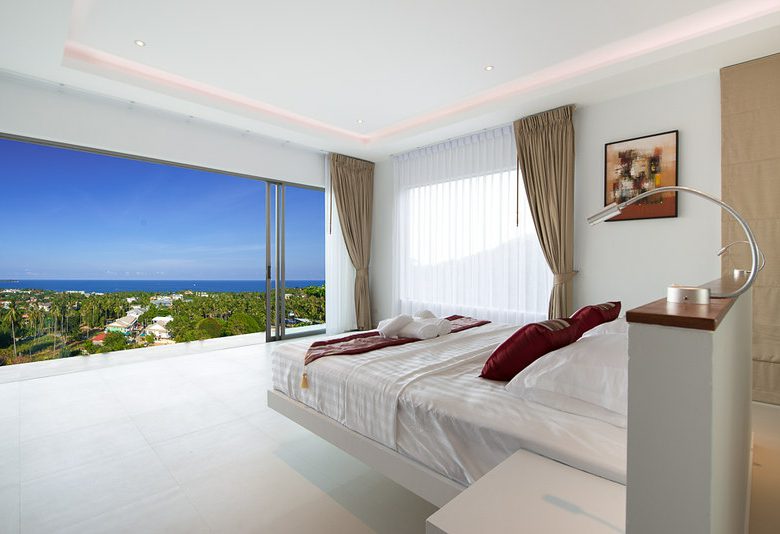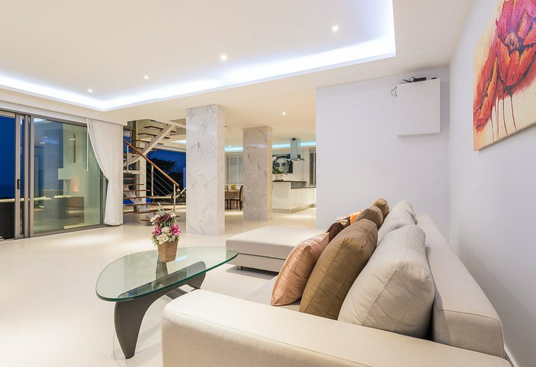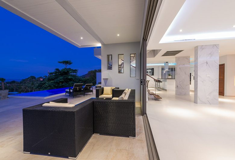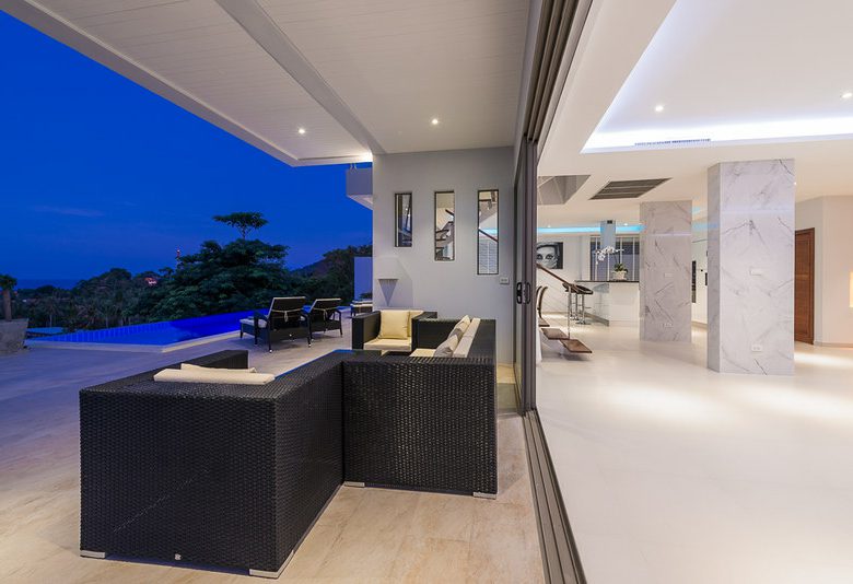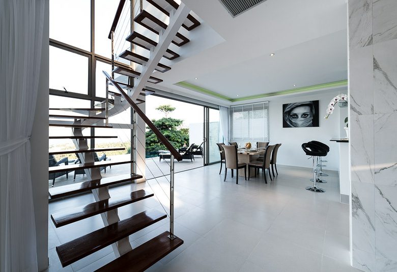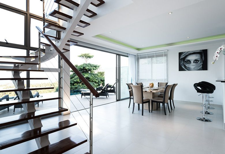 A beautiful staircase leads to the upper level of the villa and the property enjoys fantastic sea views over the Gulf of Thailand.
