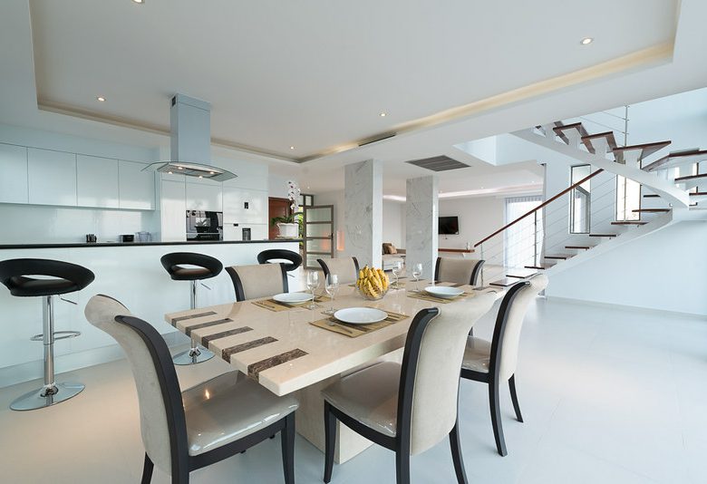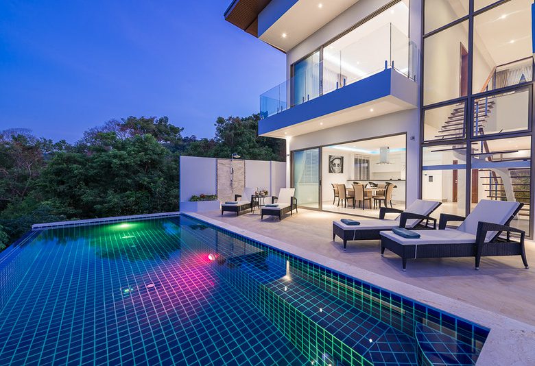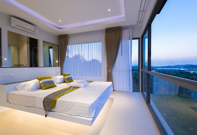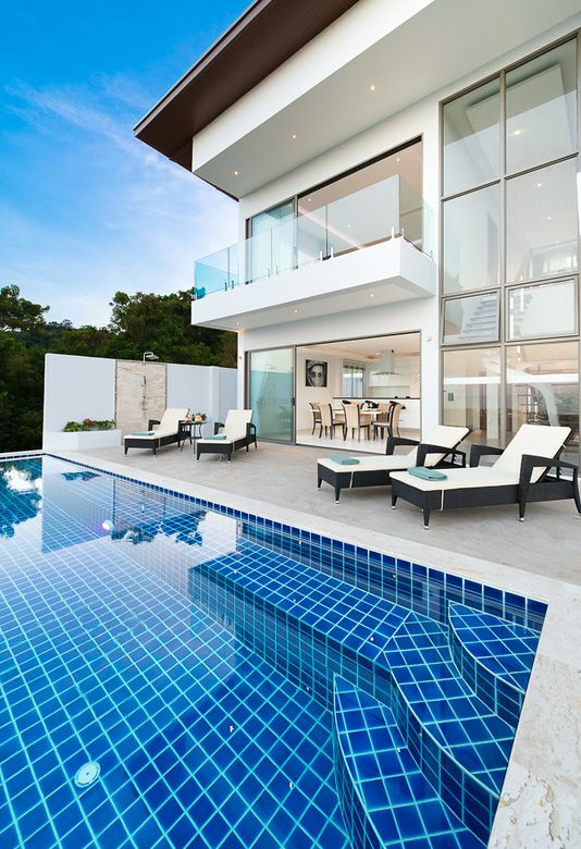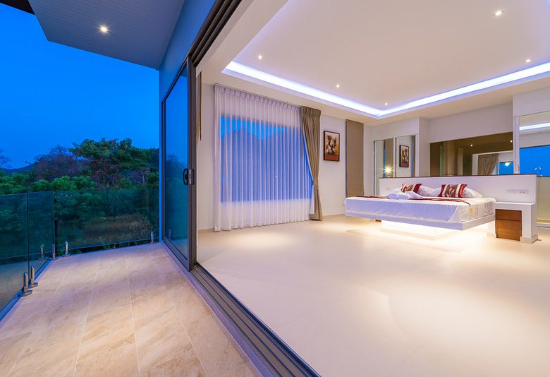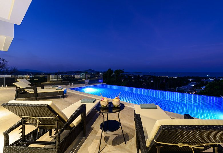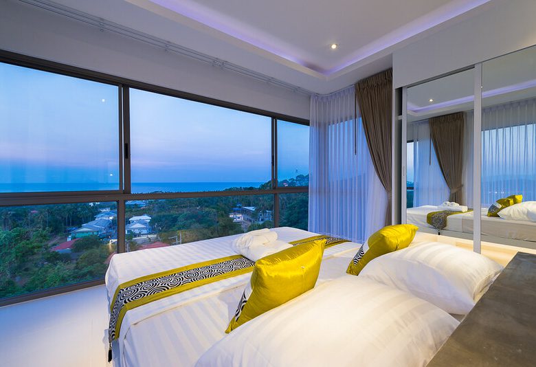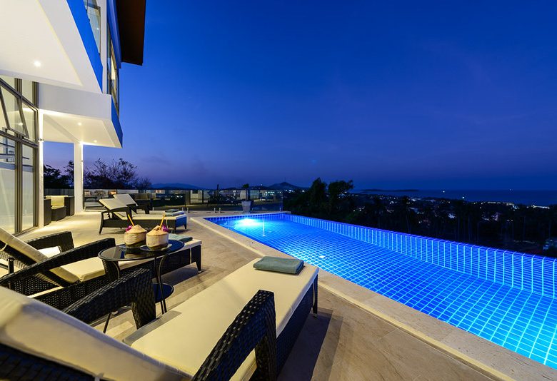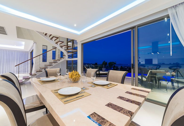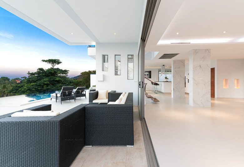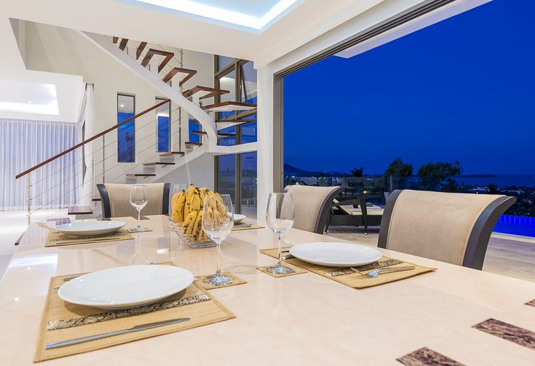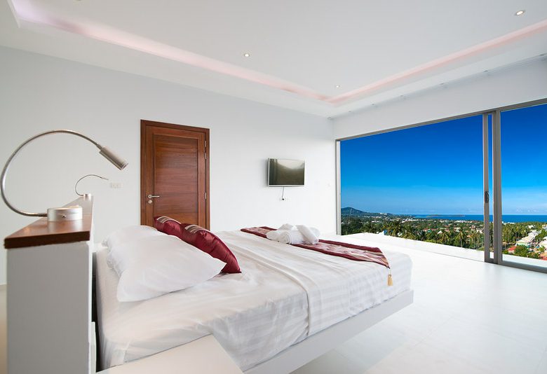 A beautiful staircase leads to the upper level of the villa and the property enjoys fantastic sea views over the Gulf of Thailand.