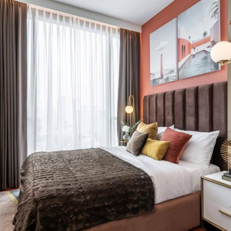 this condominium redefines urban sophistication with its bold aesthetics,