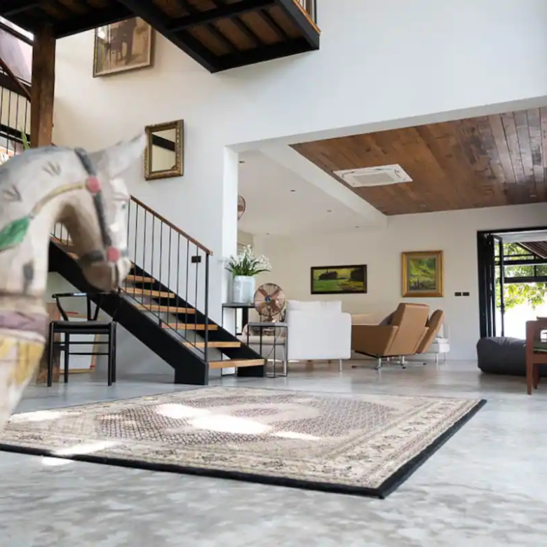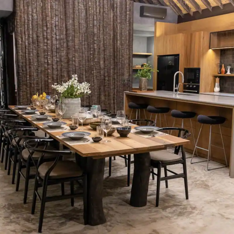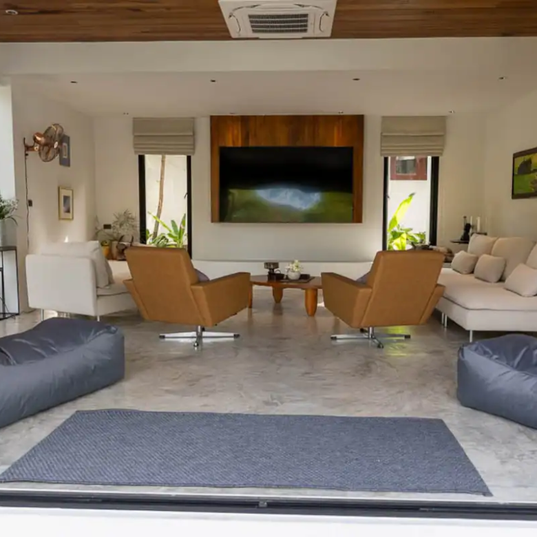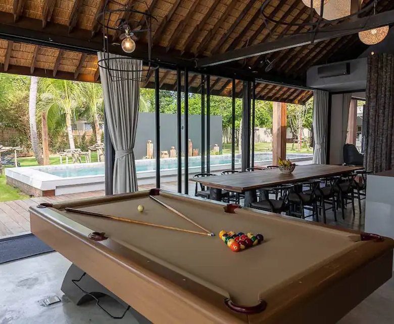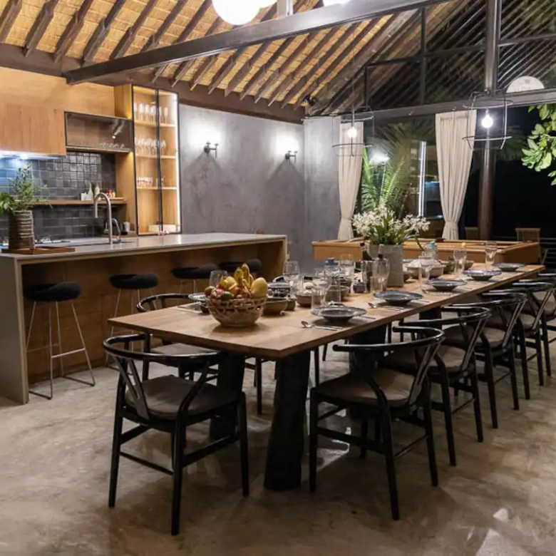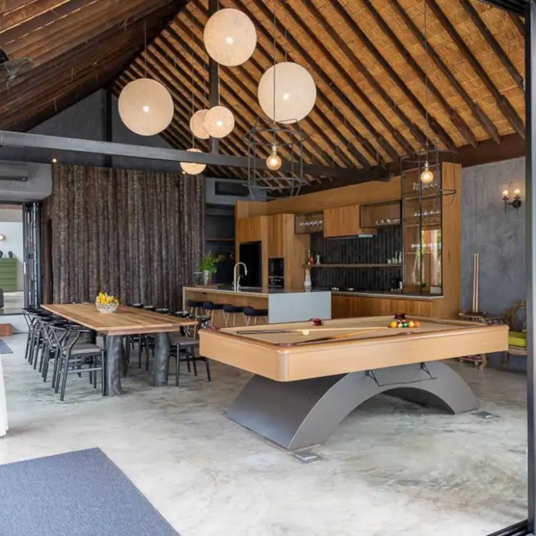 The villa has 5 bedrooms, all with king size bed and private bathroom and additional sofa/bed, can accommodate 10 to 15 people and is fully air conditioned and equipped with ceiling fans.