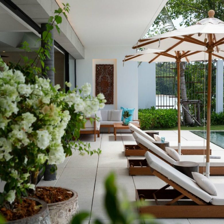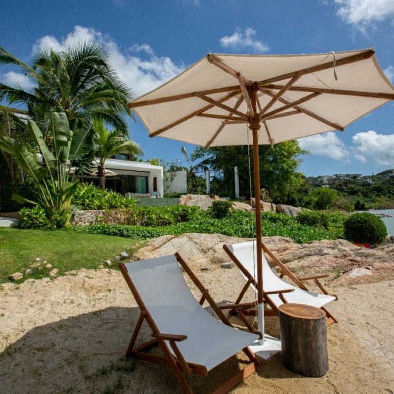 This Estate is a luxury four-villa complex in the exclusive Plai Laem neighborhood on a private beachfront on Thailandâs Koh Samui island. Designed to rise from the seashore like terraced vines in a hilly vineyard by renowned architect Gary Fell, Kerem offers the tranquility of a private family getaway with five-star hotel services.