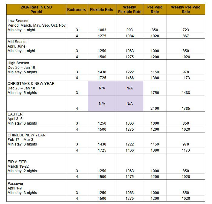 You can book each villa individually or any combination of the four for a group vacation or special occasion.