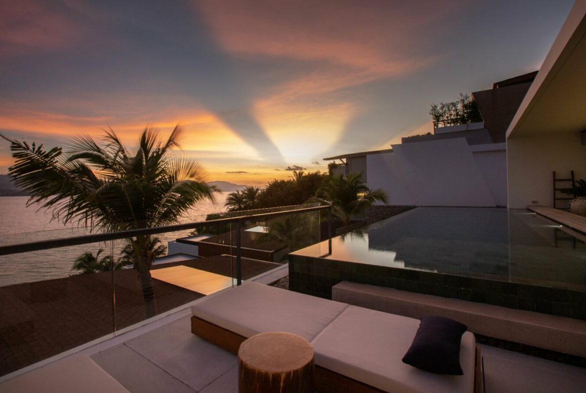 This Estate is a luxury four-villa complex in the exclusive Plai Laem neighborhood on a private beachfront on Thailandâs Koh Samui island. Designed to rise from the seashore like terraced vines in a hilly vineyard by renowned architect Gary Fell, it offers the tranquility of a private family getaway with five-star hotel services.