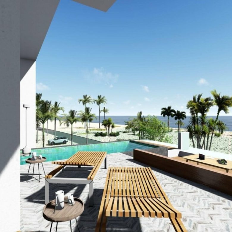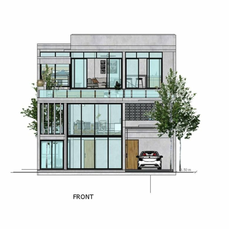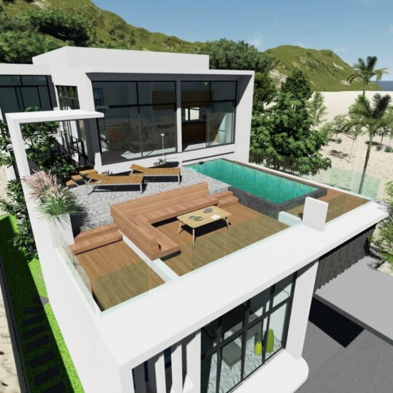 A very nice villa with home office is being built here 30 meters from Bangpor beach. On the ground floor there is space for 6 cars to park. The office is at the entrance. on the ground floor I have a European-style kitchen, a pantry, clothespins and a guest toilet.