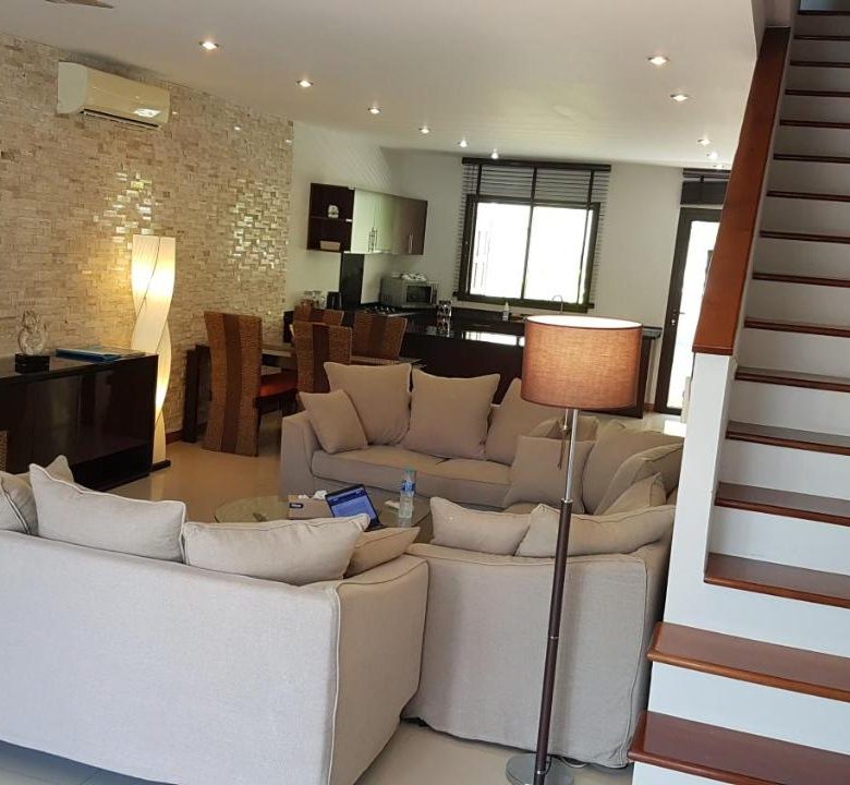 These spacious luxury townhouses in a residence in Choeng Mon, Koh Samui offer 2-bedroom, 3-bedroom and 4-bedroom accommodation, all built in the same style over 2 floors. Suitable for entertaining and relaxing on a grand scale, this residence is absolutely spectacular! These stylish accommodations are located in a 24-hour gated community in Choeng Mon Village with full property management, parking and two large salted communal pools. An enchanting oasis of contemporary style and desirable amenities, this residence exudes timeless character and charm.