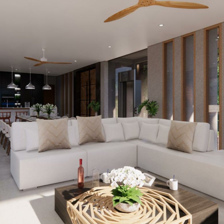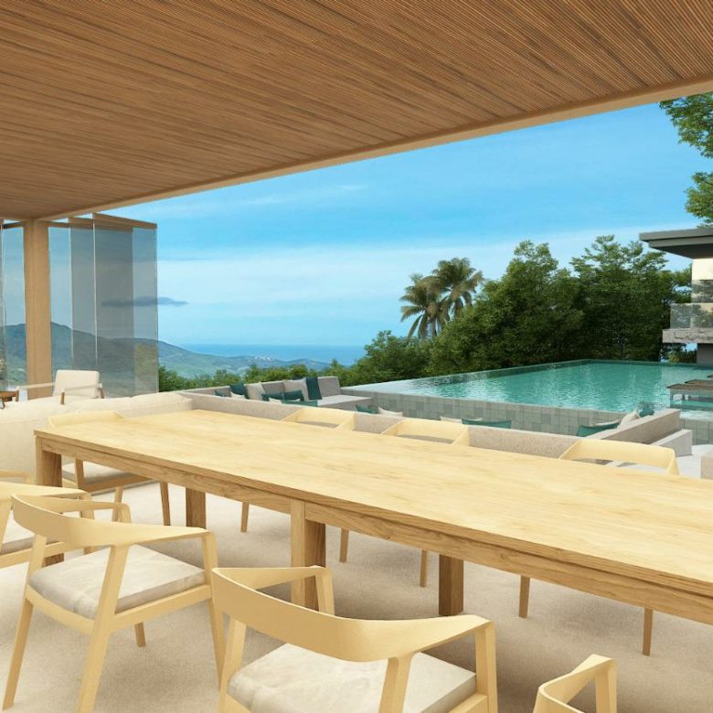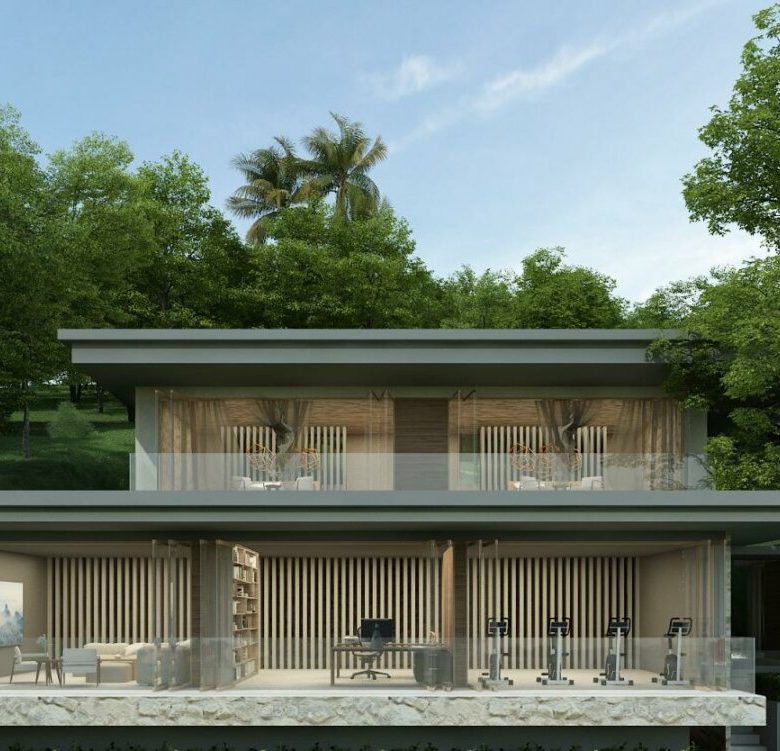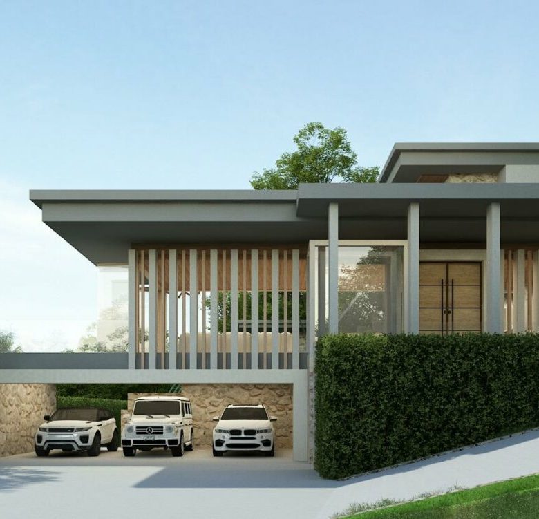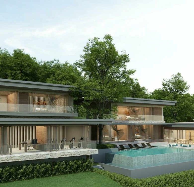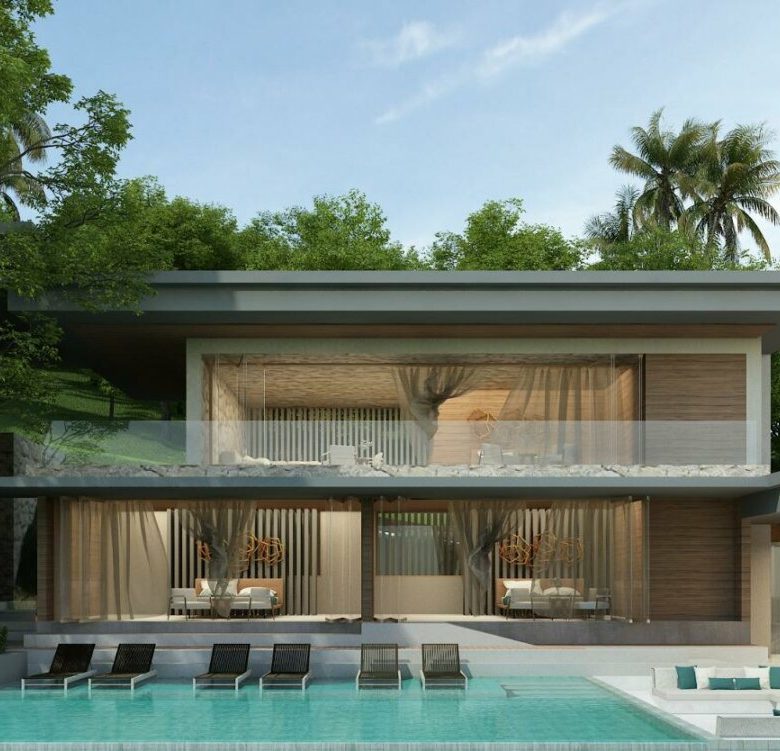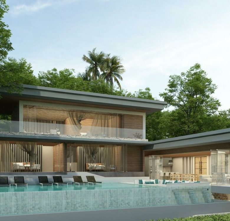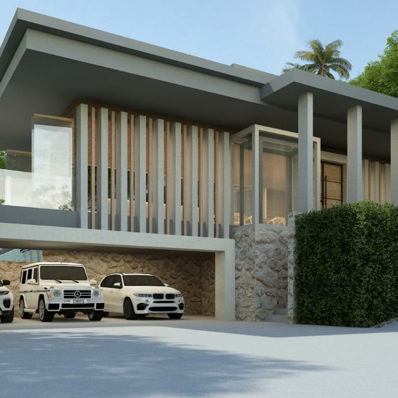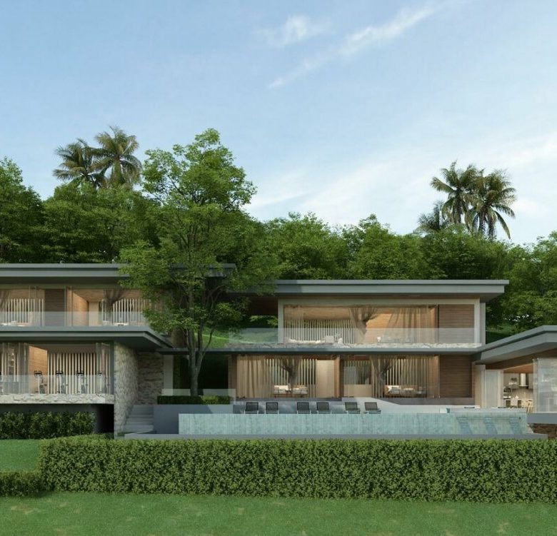 This modern villa that sits at the crest area of the Khaophra Estate in Bophut is designed as a private oasis not peace just 6 minutes drive from Fishermans Village and Bophut Beach .