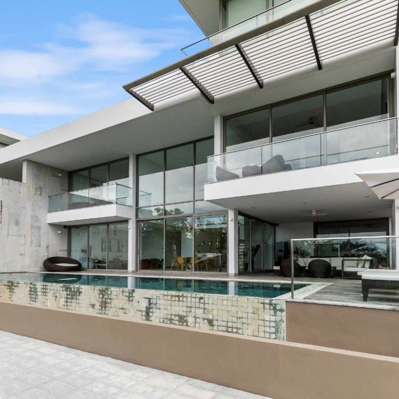This exclusive villa is available for $1.8 million USD. The Thai Baht price shown is an approximation of this figure. Please check the exchange rate to get the accurate THB price.